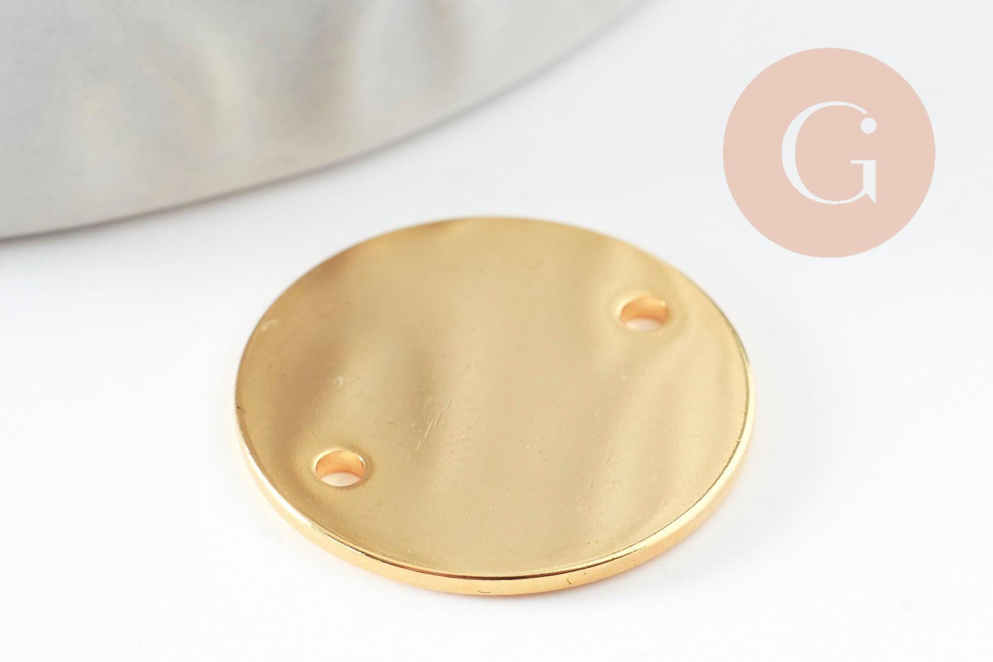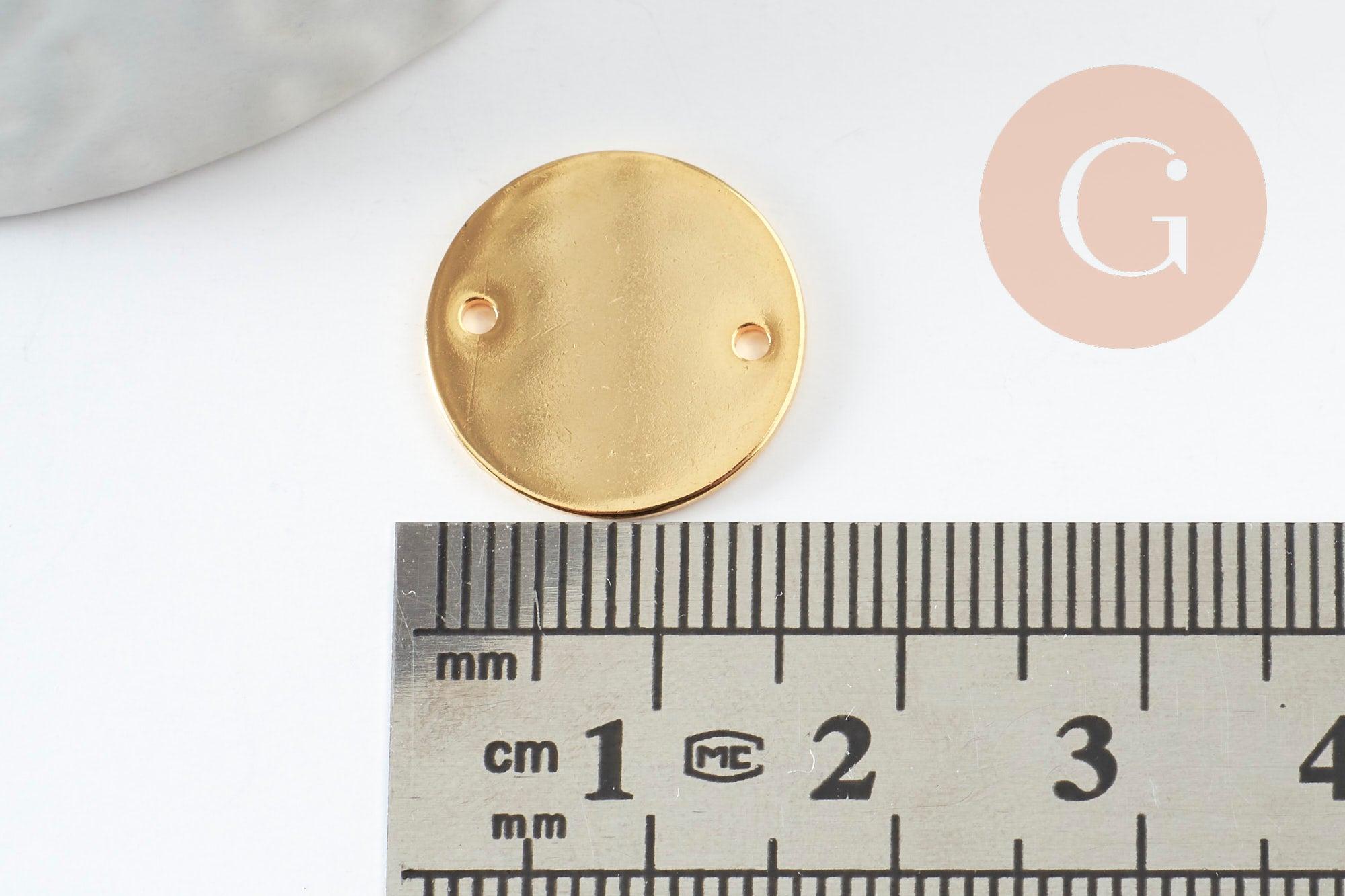 Este colgante con conector redondo de acero inoxidable bañado en oro de 16 mm es un elemento versátil perfecto para crear joyas elegantes y modernas.