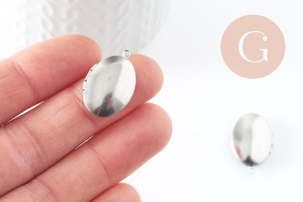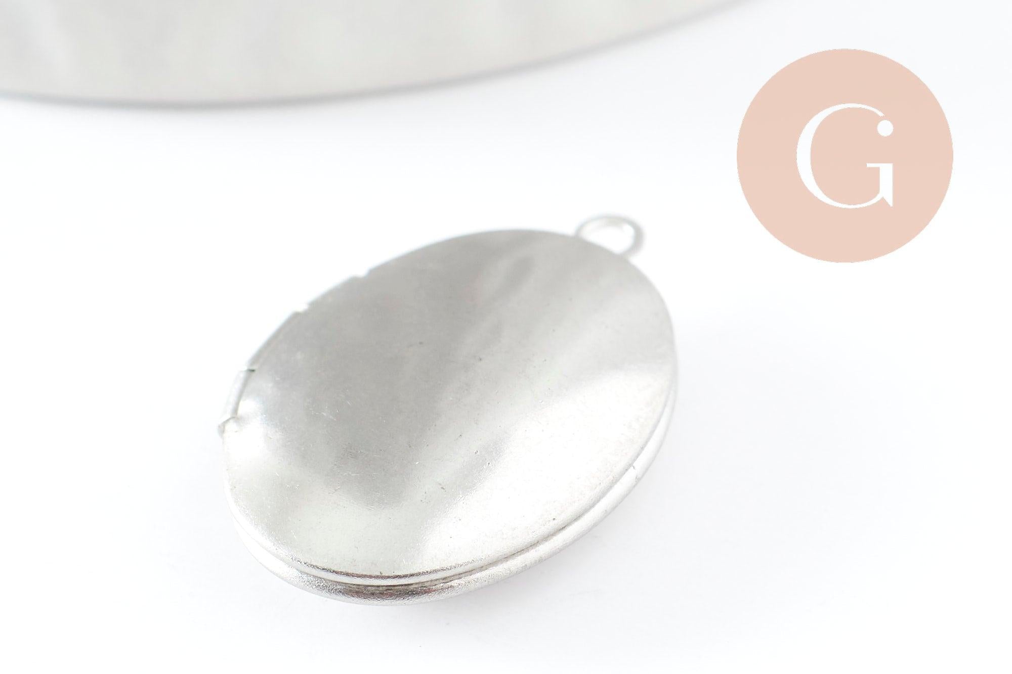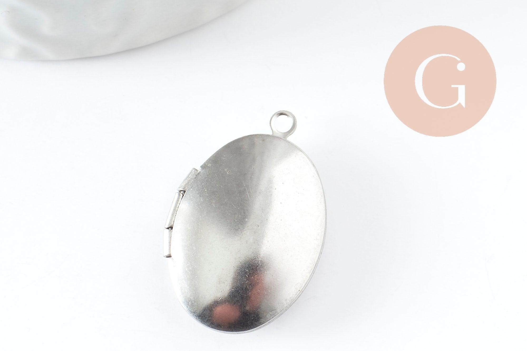 Haga un collar único con este colgante con medallón ovalado en acero inoxidable 316 de color platino.
