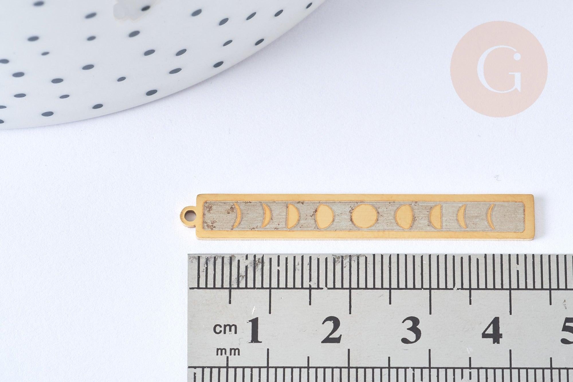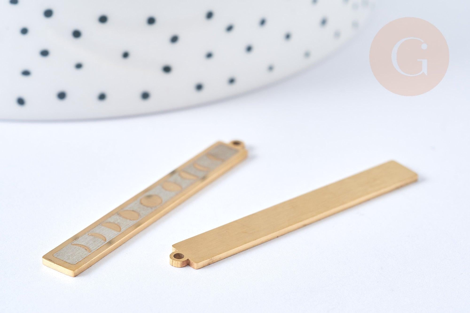 Adopta este colgante rectangular en acero inoxidable 201 bañado en oro. Ligero y original, éste representa las fases de la luna. ¡Crea un montón de bisutería DIY moderna y chic con temática astral!