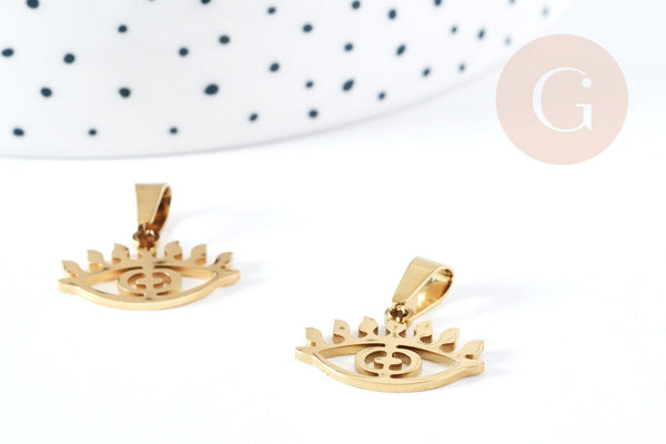 Colgante de ojo protector dorado de acero inoxidable 304 de 18,5 mm (x1) (G8727)