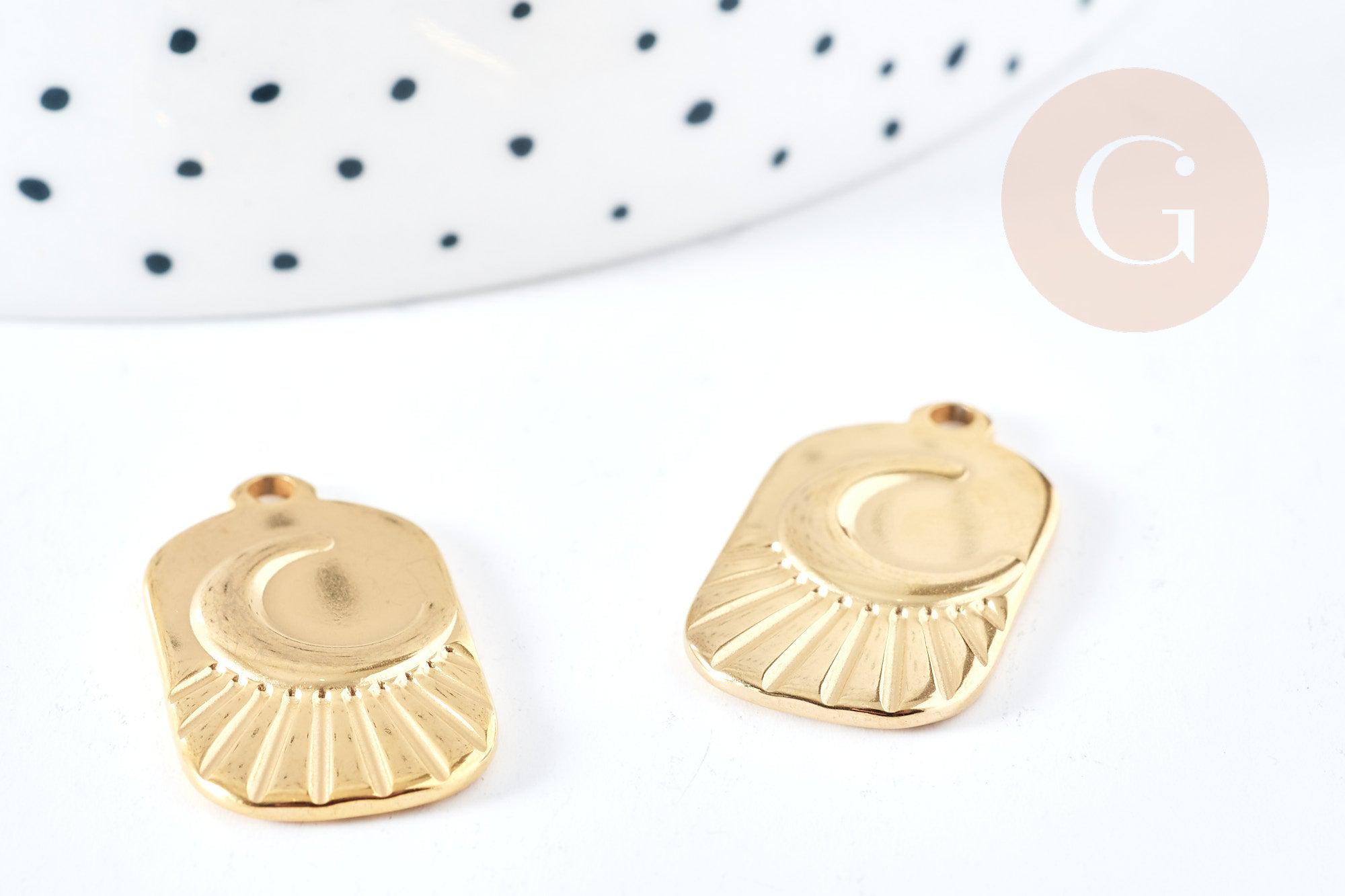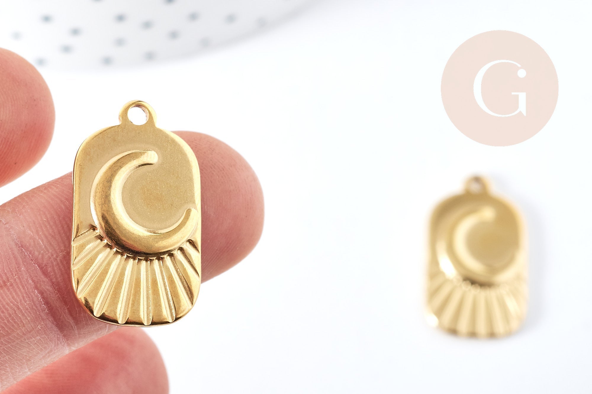 El colgante rectangular de luna de acero inoxidable dorado es un elemento único para crear joyas.