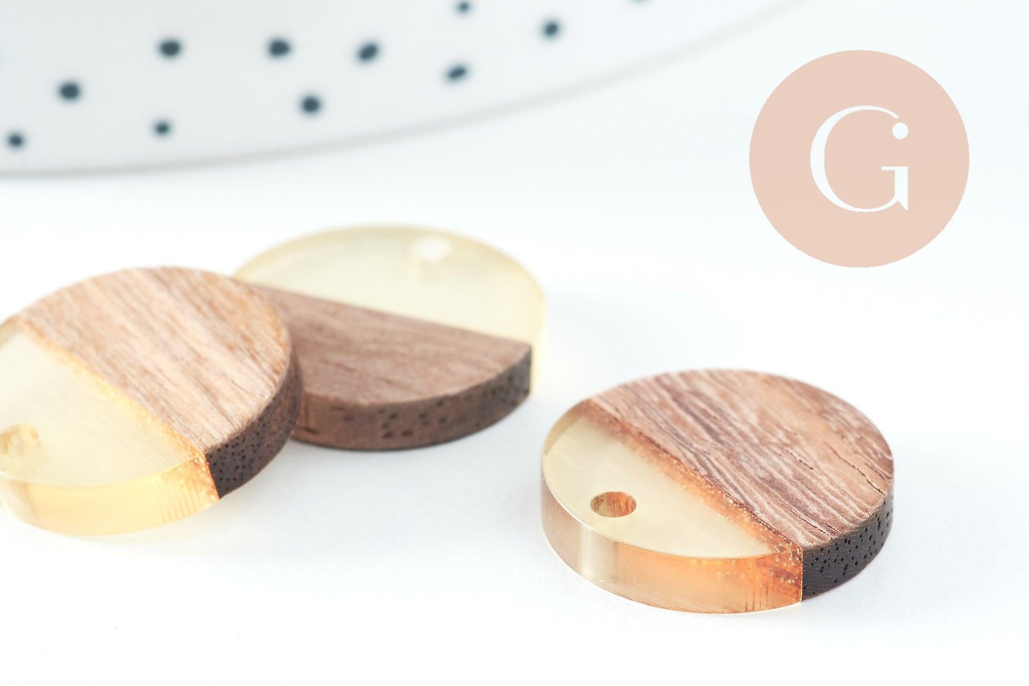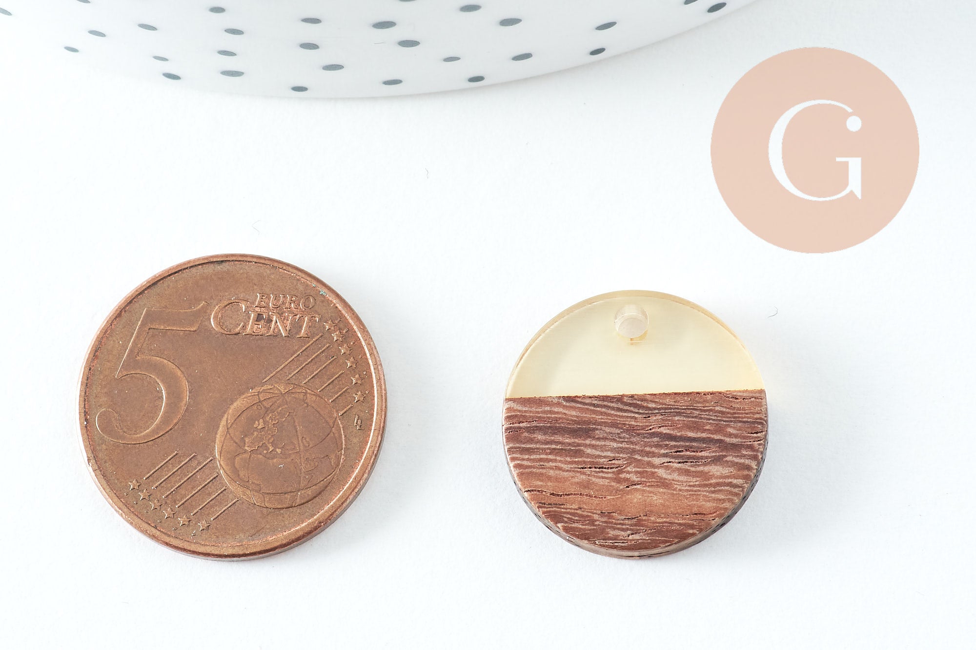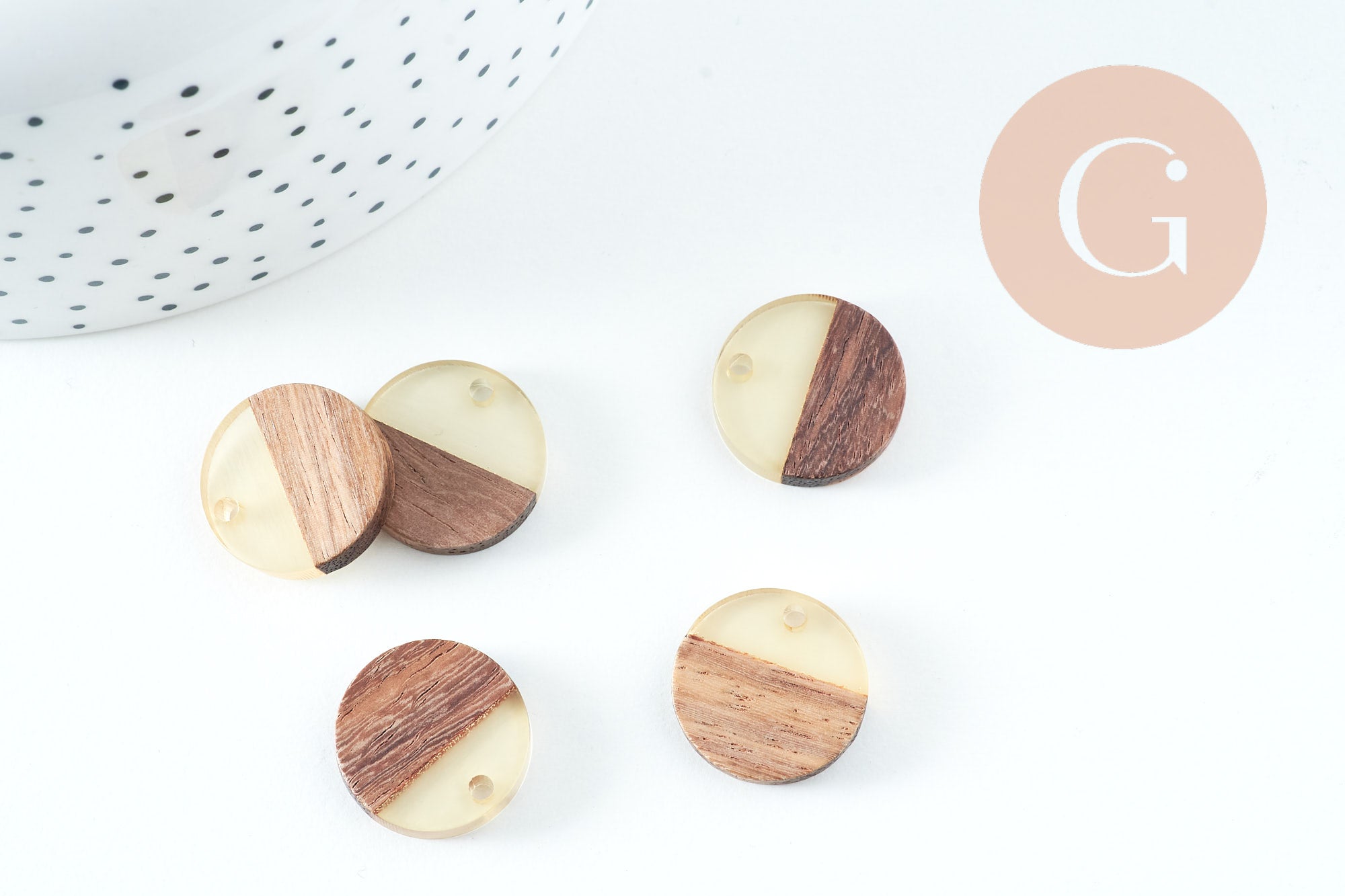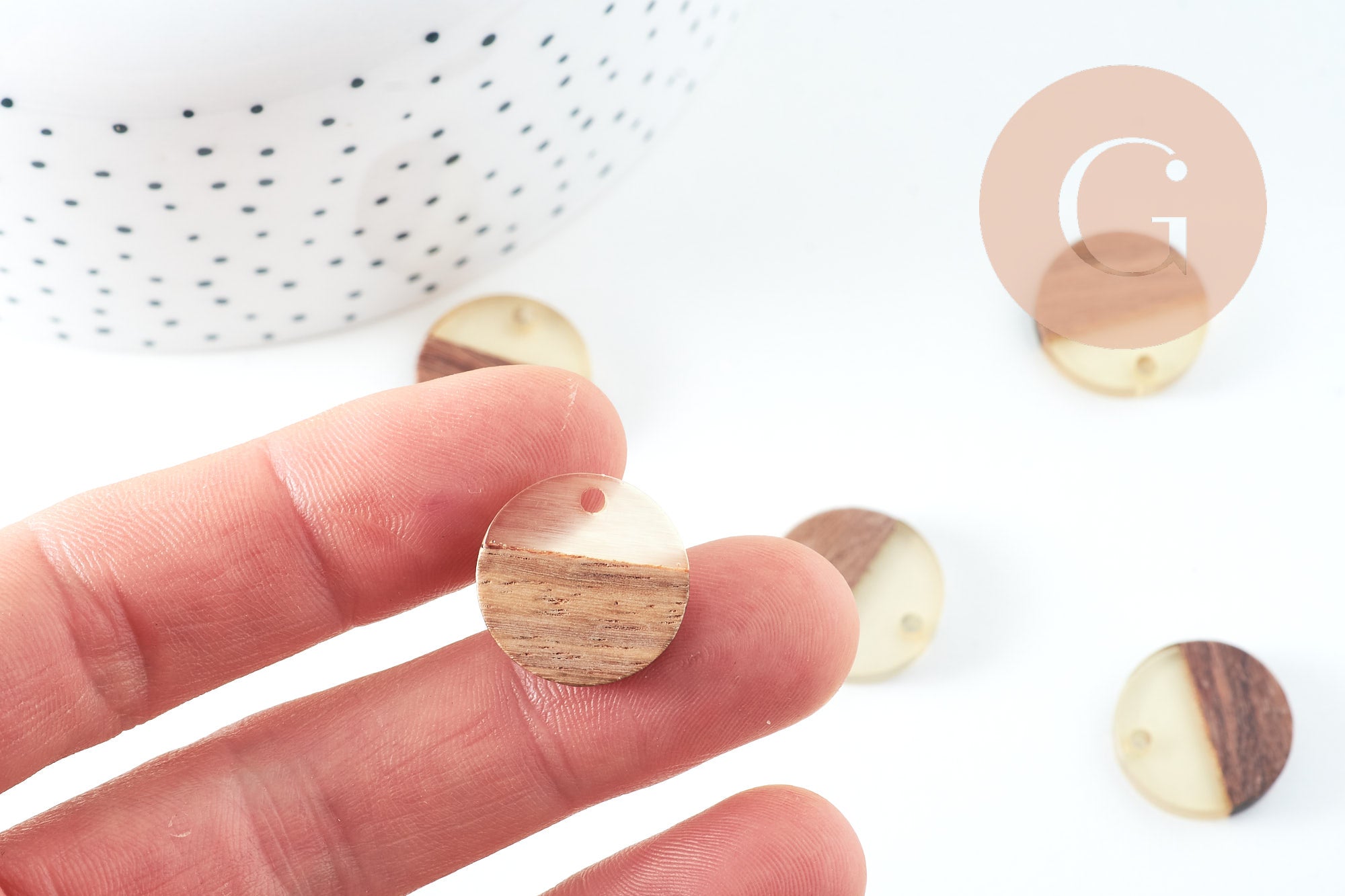pendentif disque bois résine, bois naturel, perles bois, Perles géométriques,perle ronde,perle ronde bois ,18mm, x5 G1880