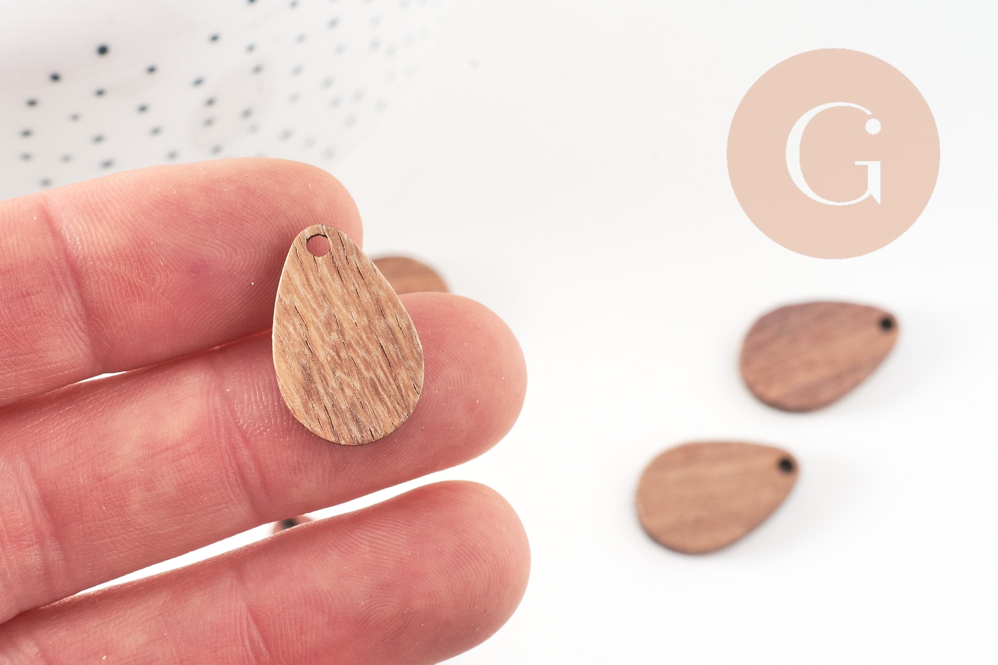 Cuenta de gota de madera, madera natural, cuenta geométrica, cuenta de gota, creación de joyería de madera, 21 mm, x5 G2546
