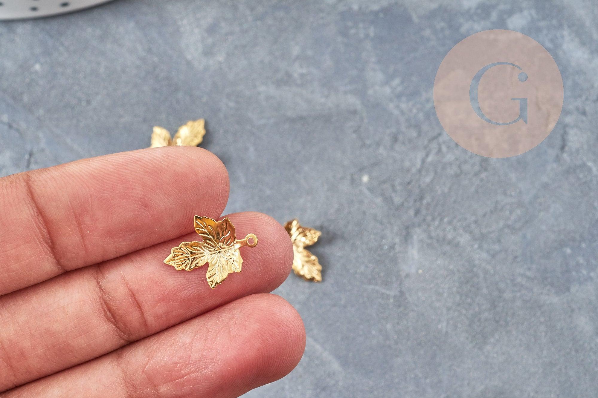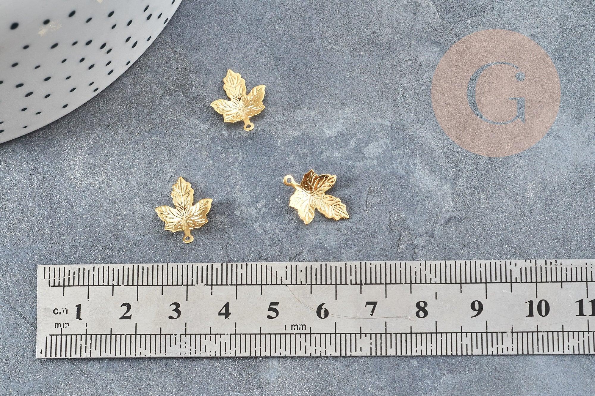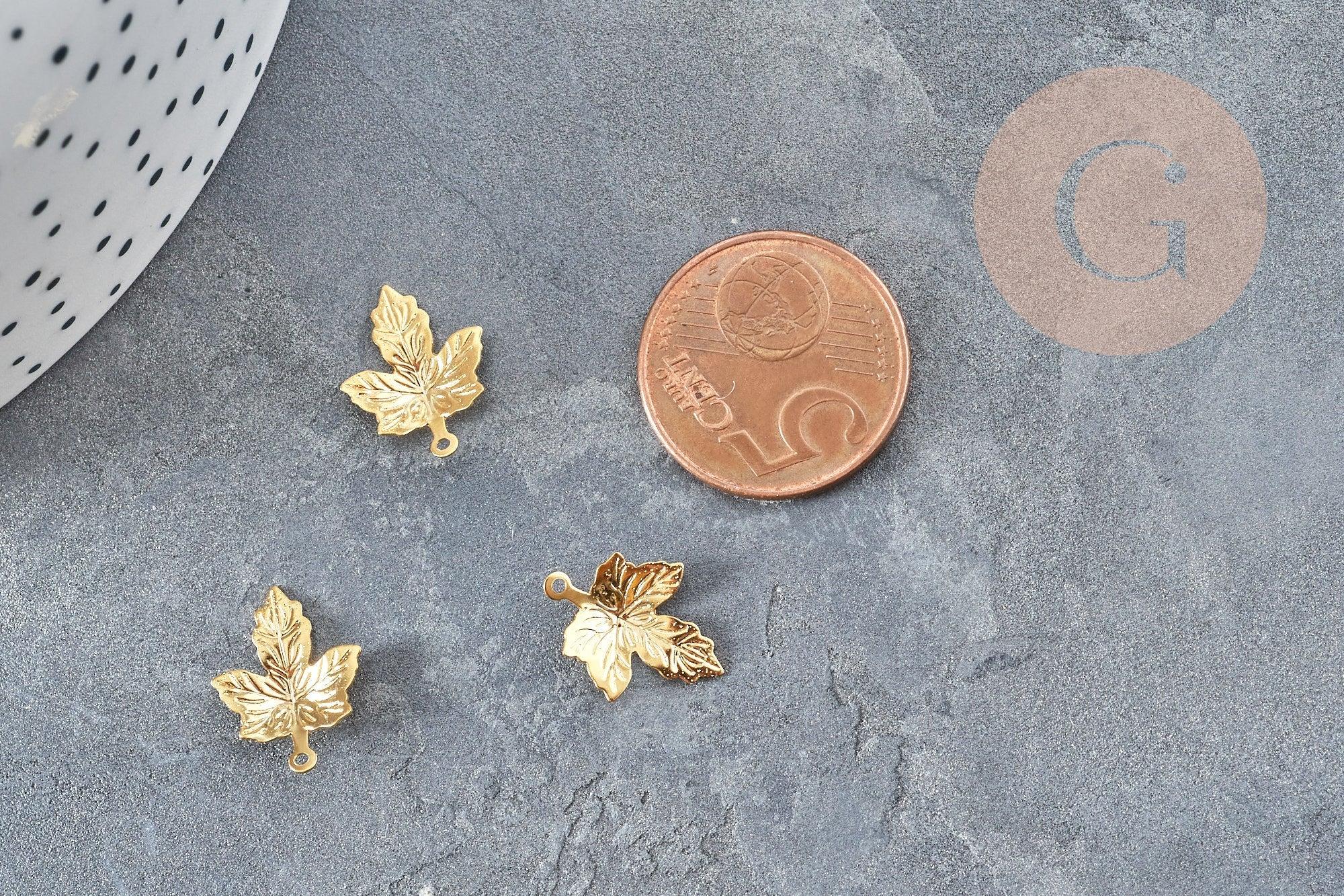 Pendentif feuille d'érable en acier 304 inoxydable doré 15mm, x5 (G4610)