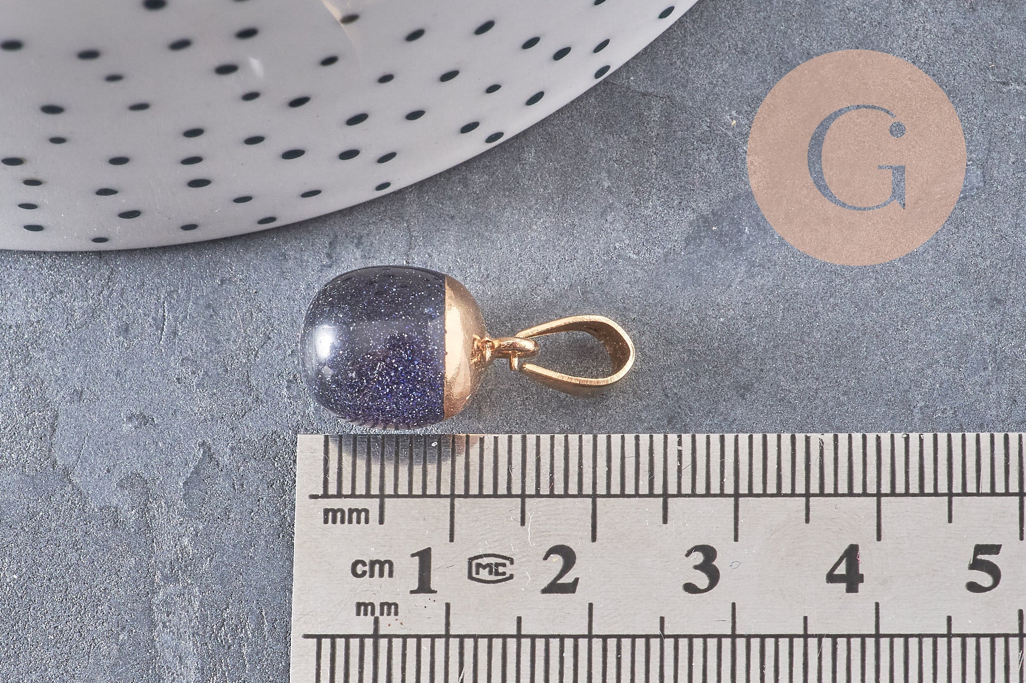 Déjate seducir por este colgante de piedra dorada de color azul medianoche con su soporte dorado.