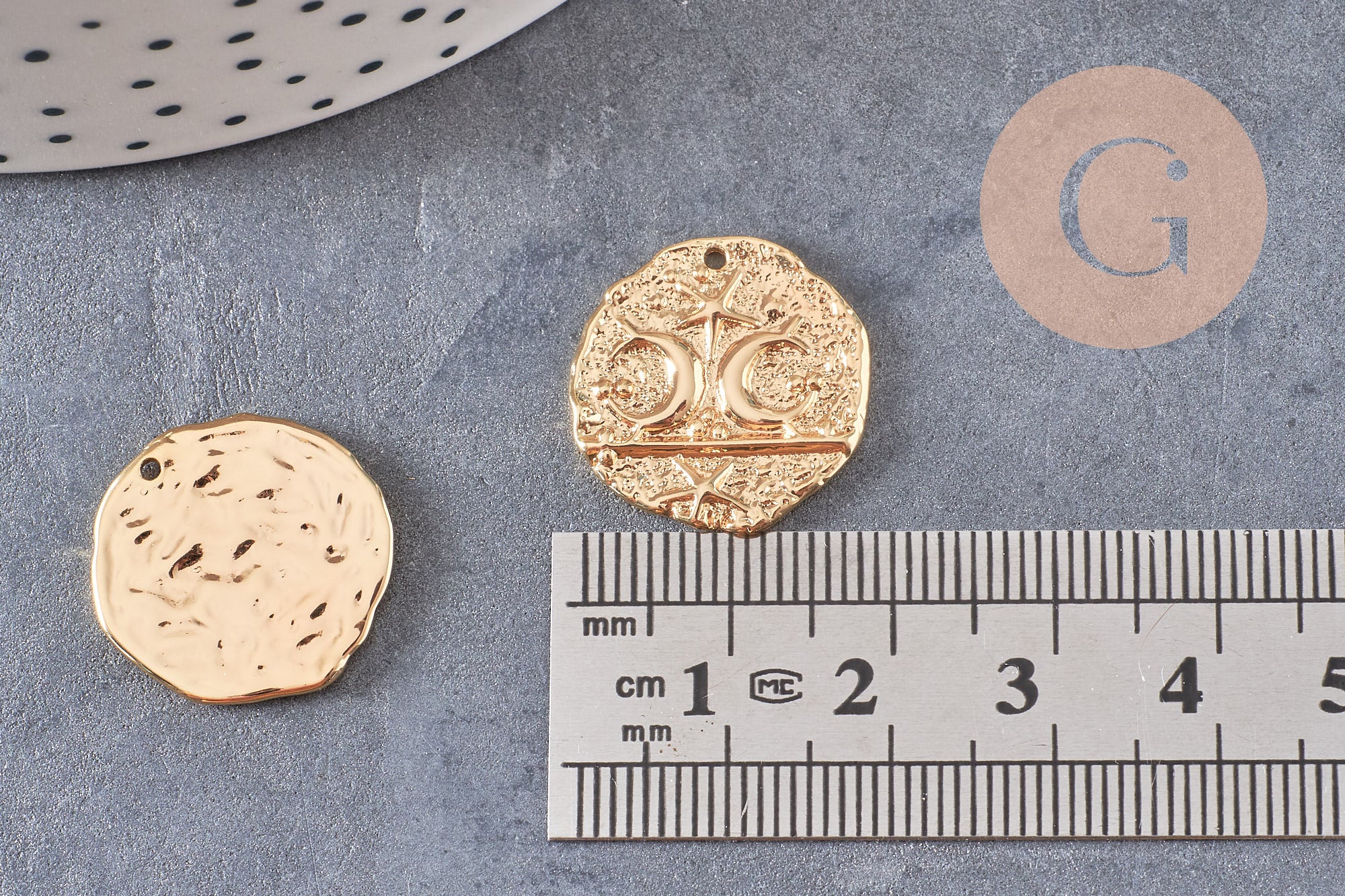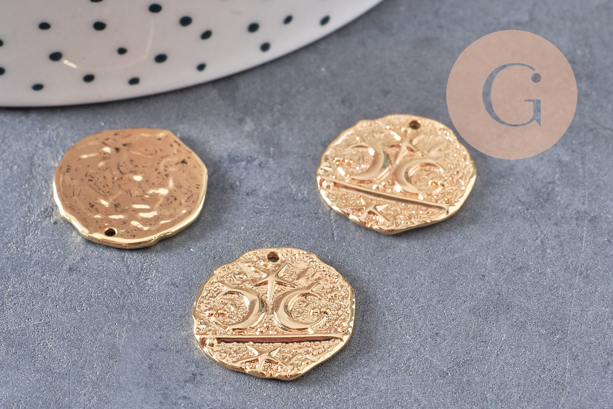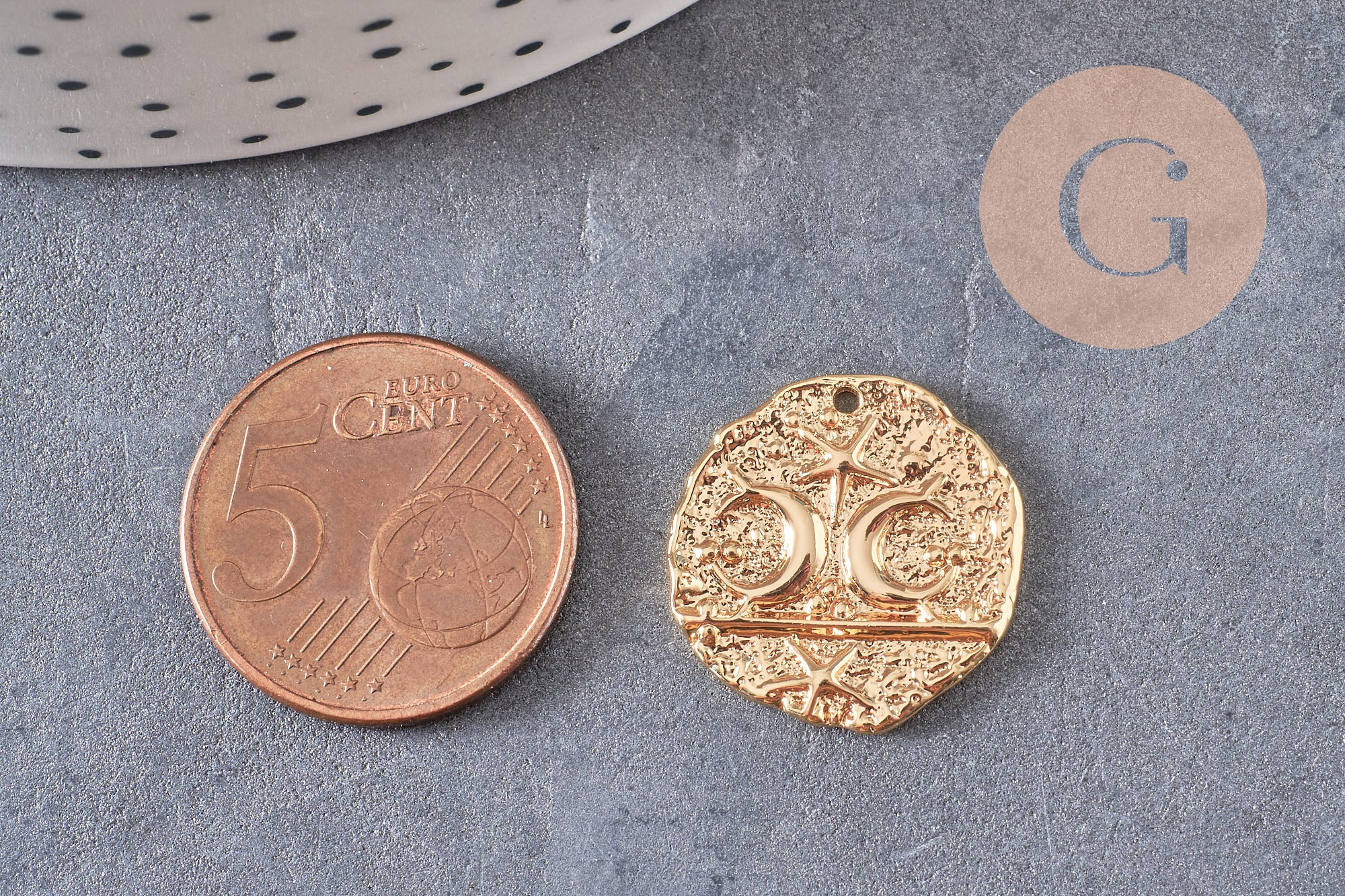 Pendentif rond lune protecteur chance en laiton zircon 18K 19mm, x1 (G10558)