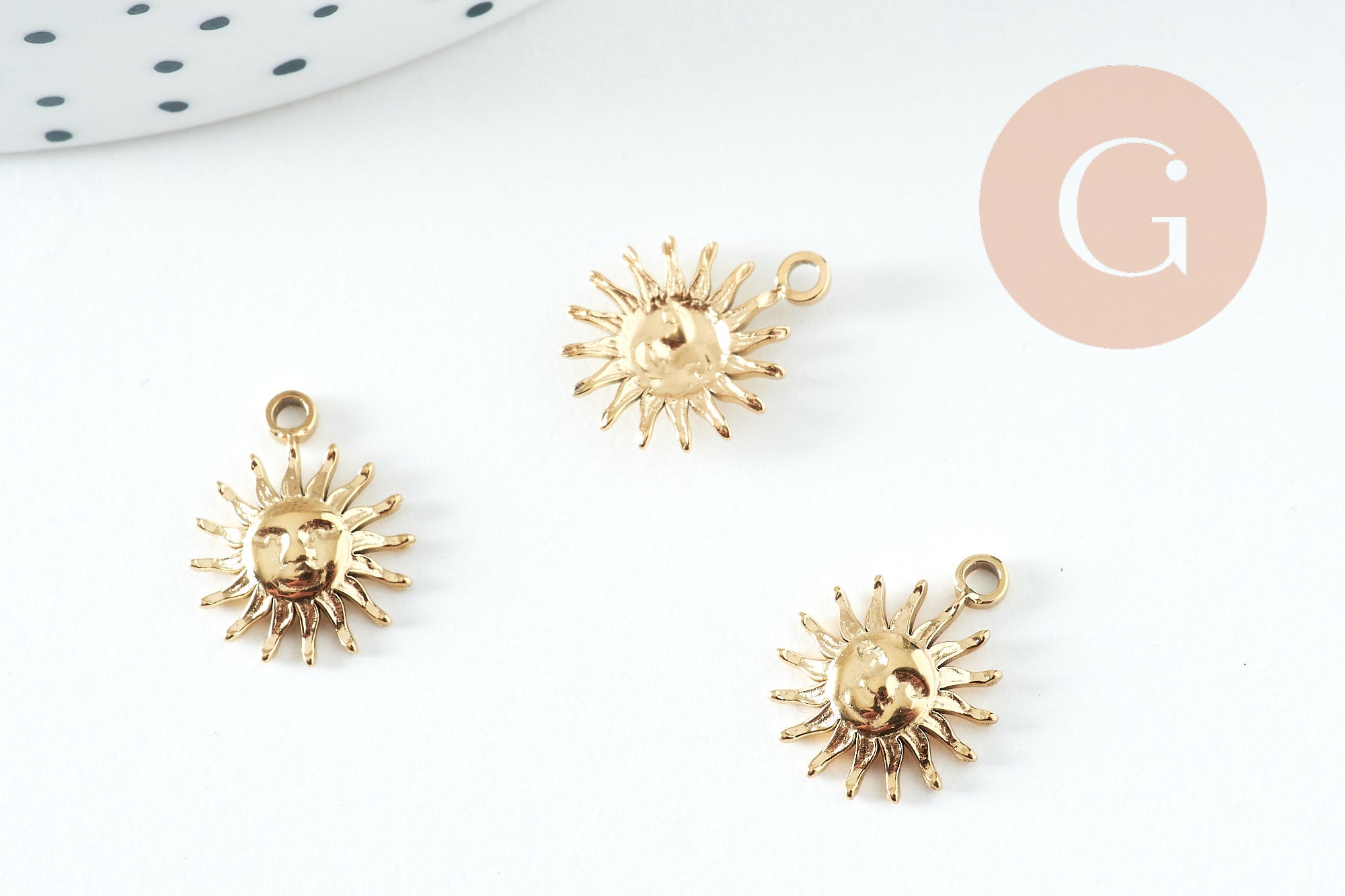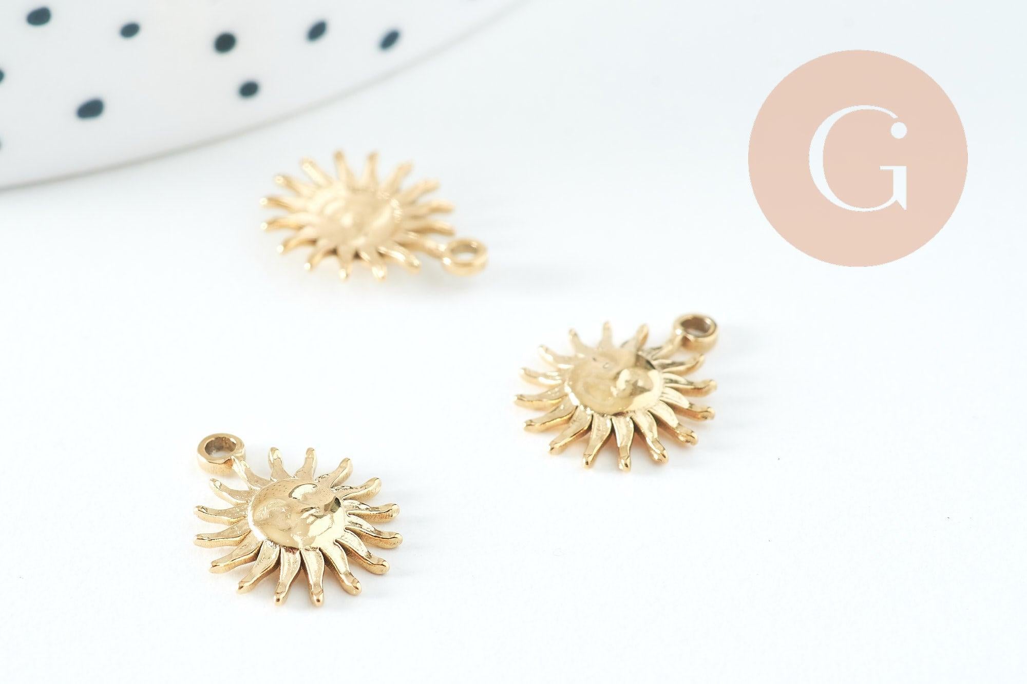 Brilla con creatividad con este colgante de sol de acero inoxidable IP 304 con baño de oro de 24 quilates. Una joya luminosa que podrás incorporar a tus creaciones DIY y darle un toque soleado y místico.
