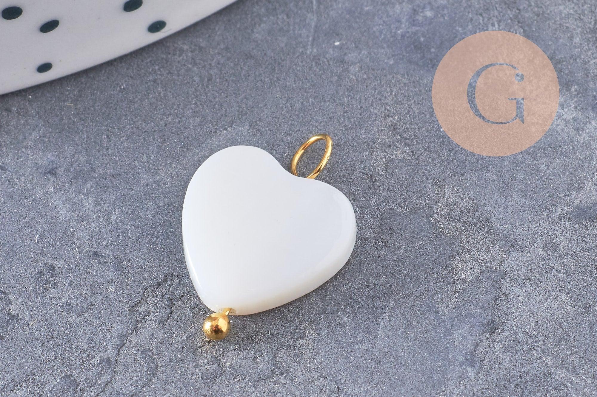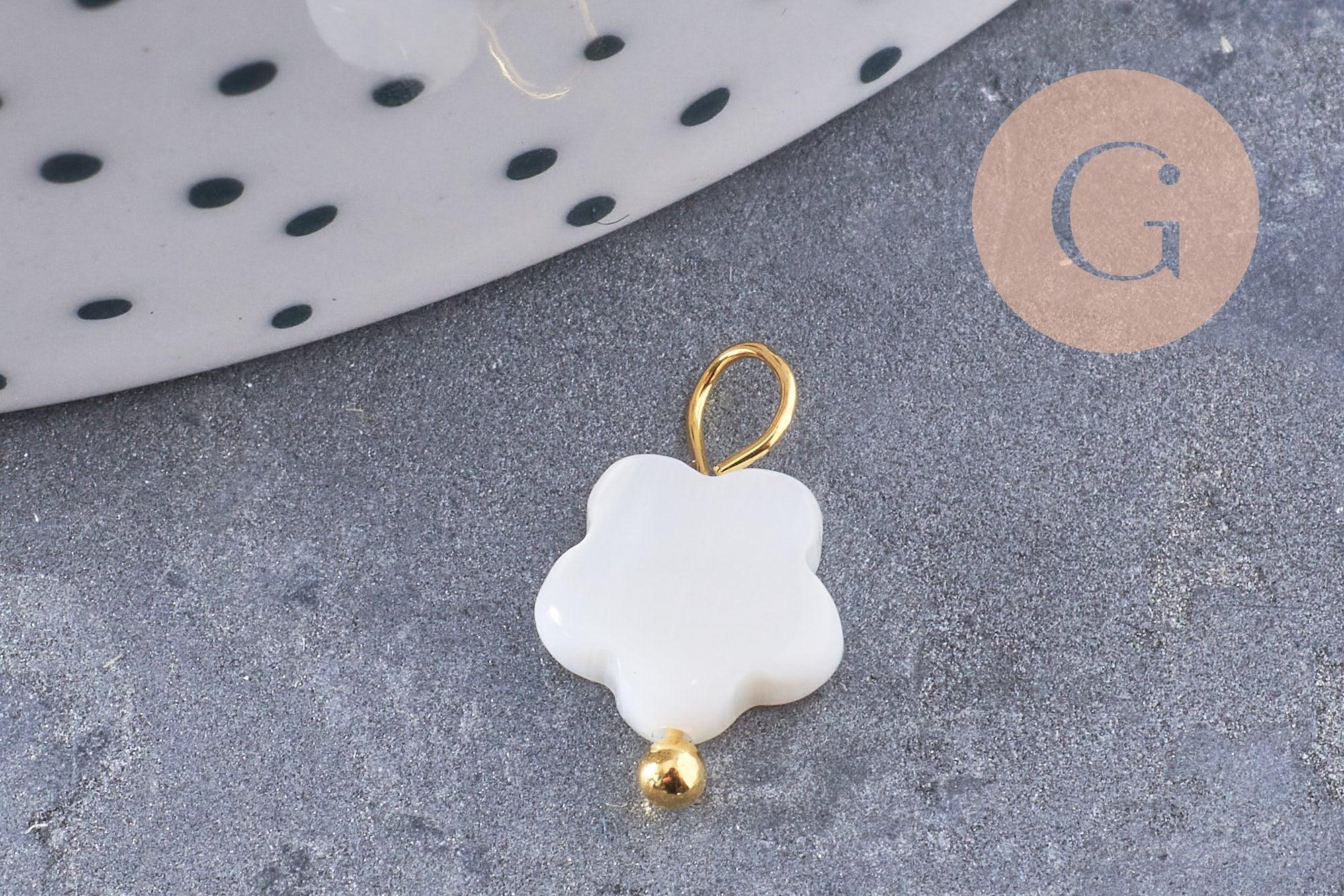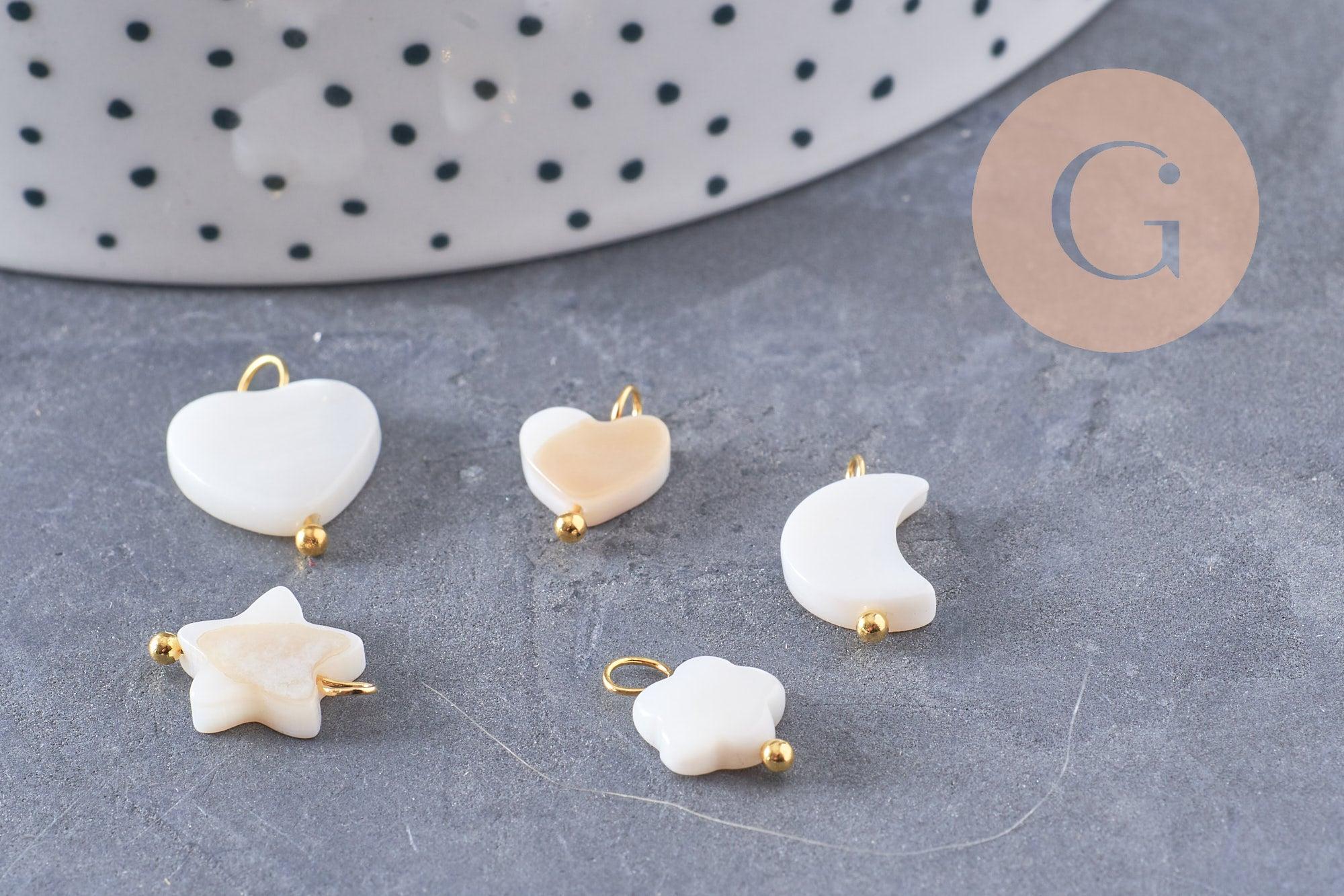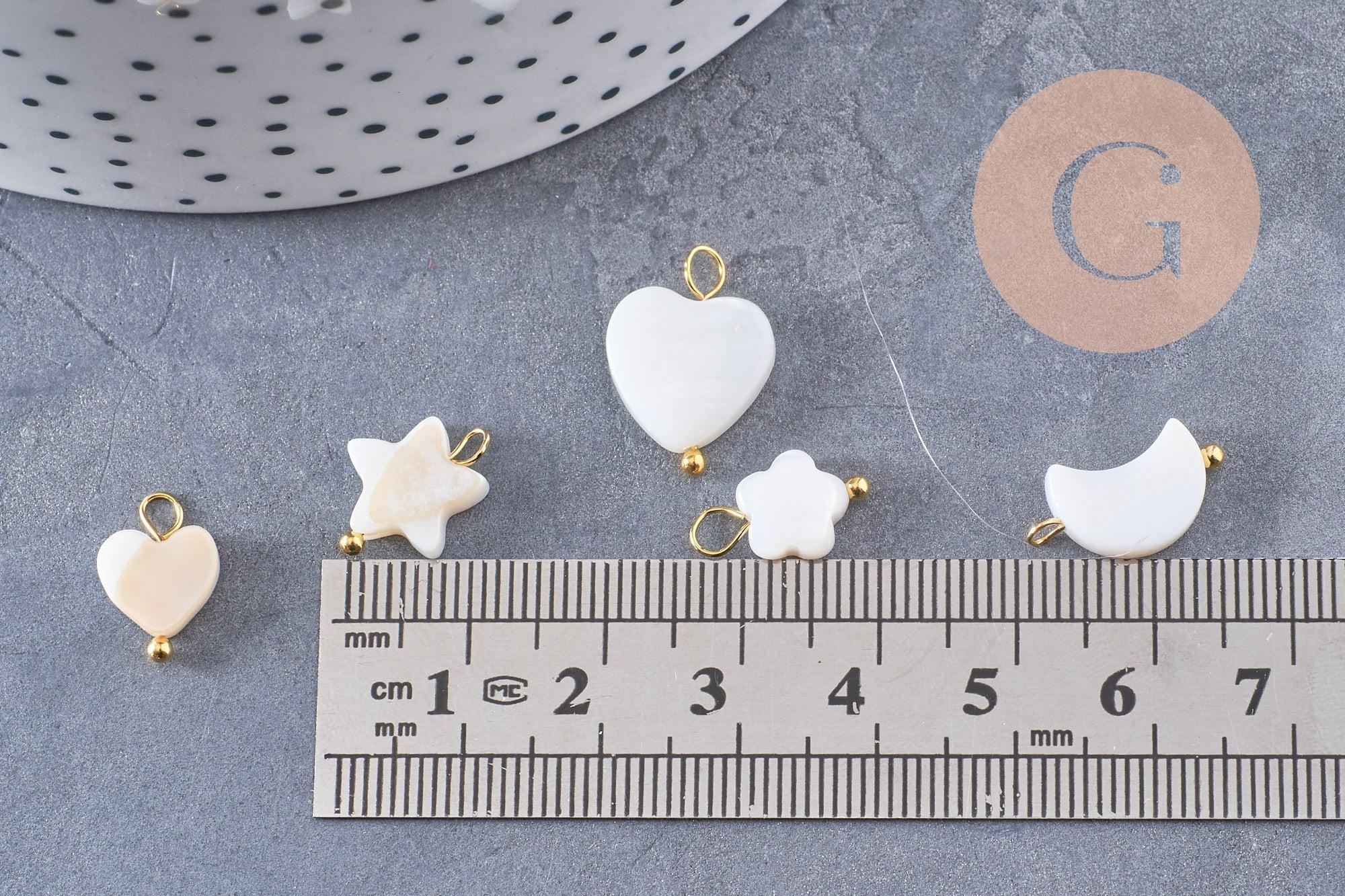 Charm de nácar blanco natural con forma de corazón, estrella, luna, flor y zamac dorado de 13~16,5 mm, x1 (G10090)