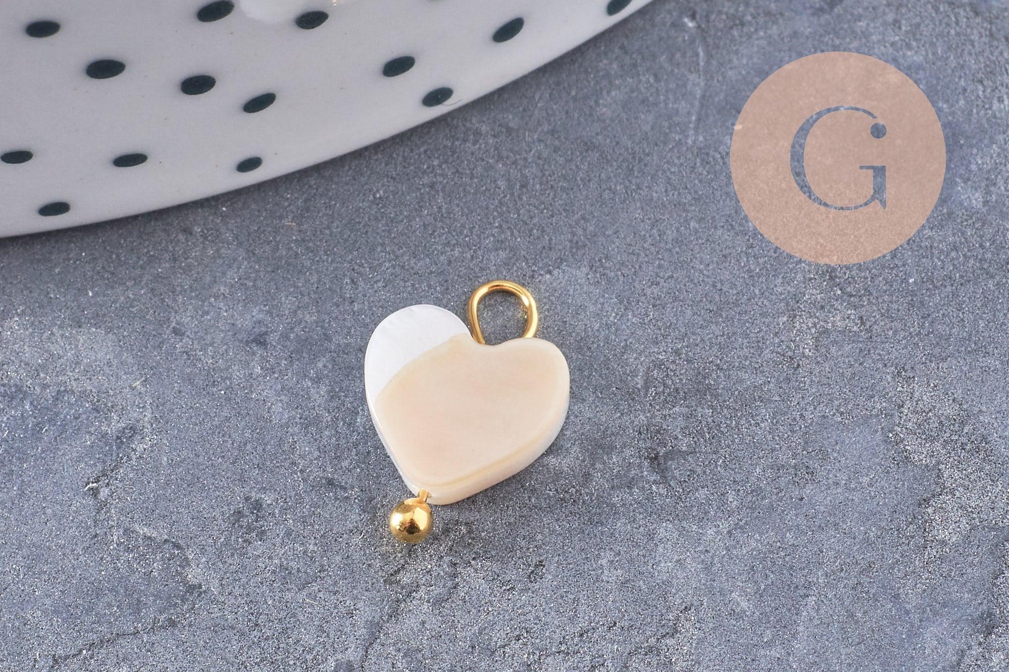 Realza tus creaciones con este charm de nácar blanco natural , montado sobre una estructura de zamac dorado .