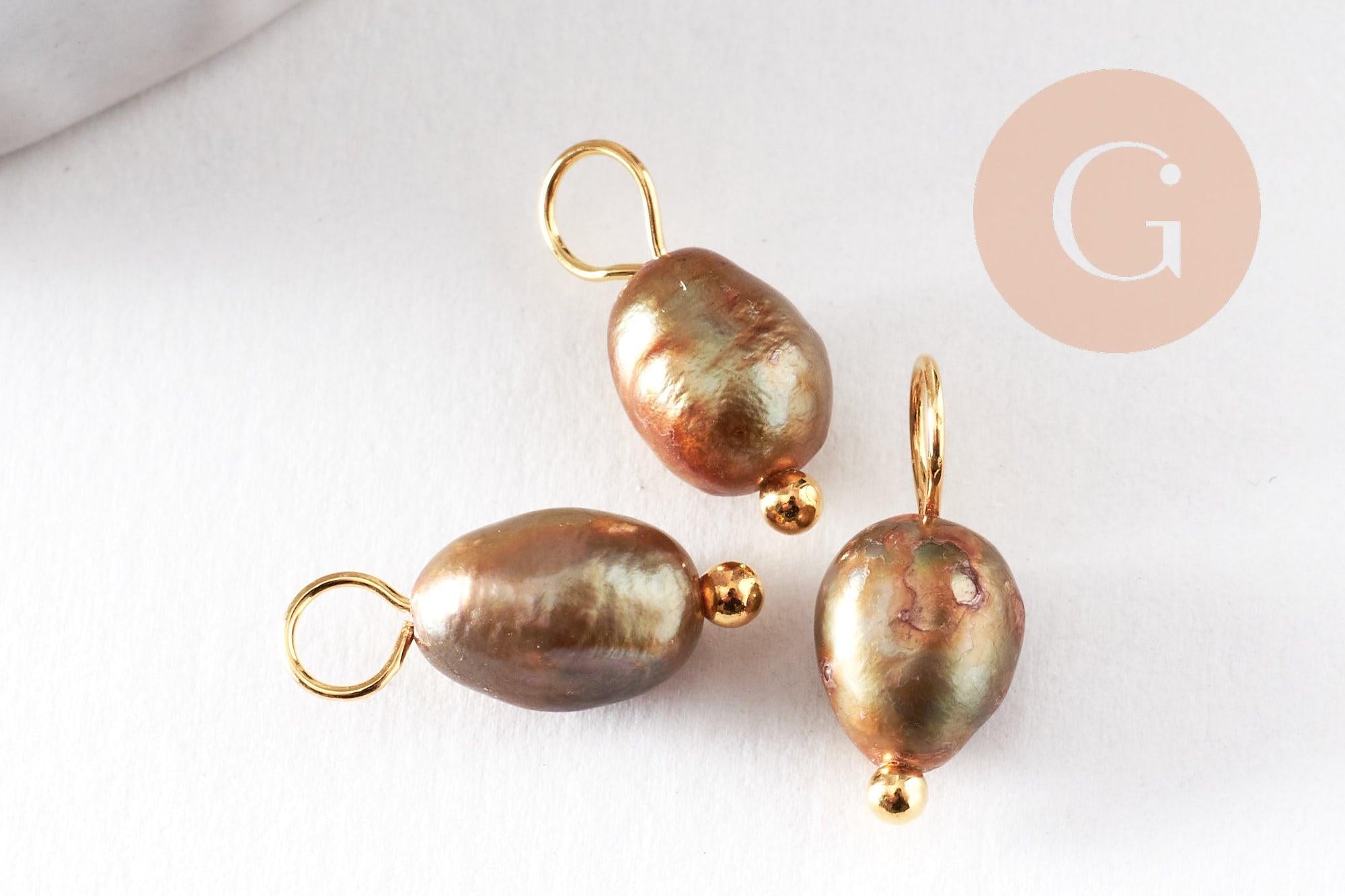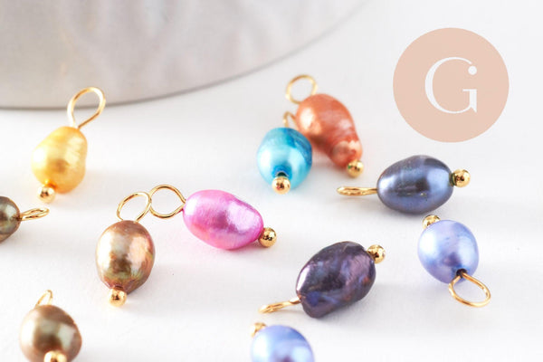 Elige este colorido dije de perla natural de agua dulce , montado en una varilla de latón bañada en oro. Ideal para crear bisutería DIY.