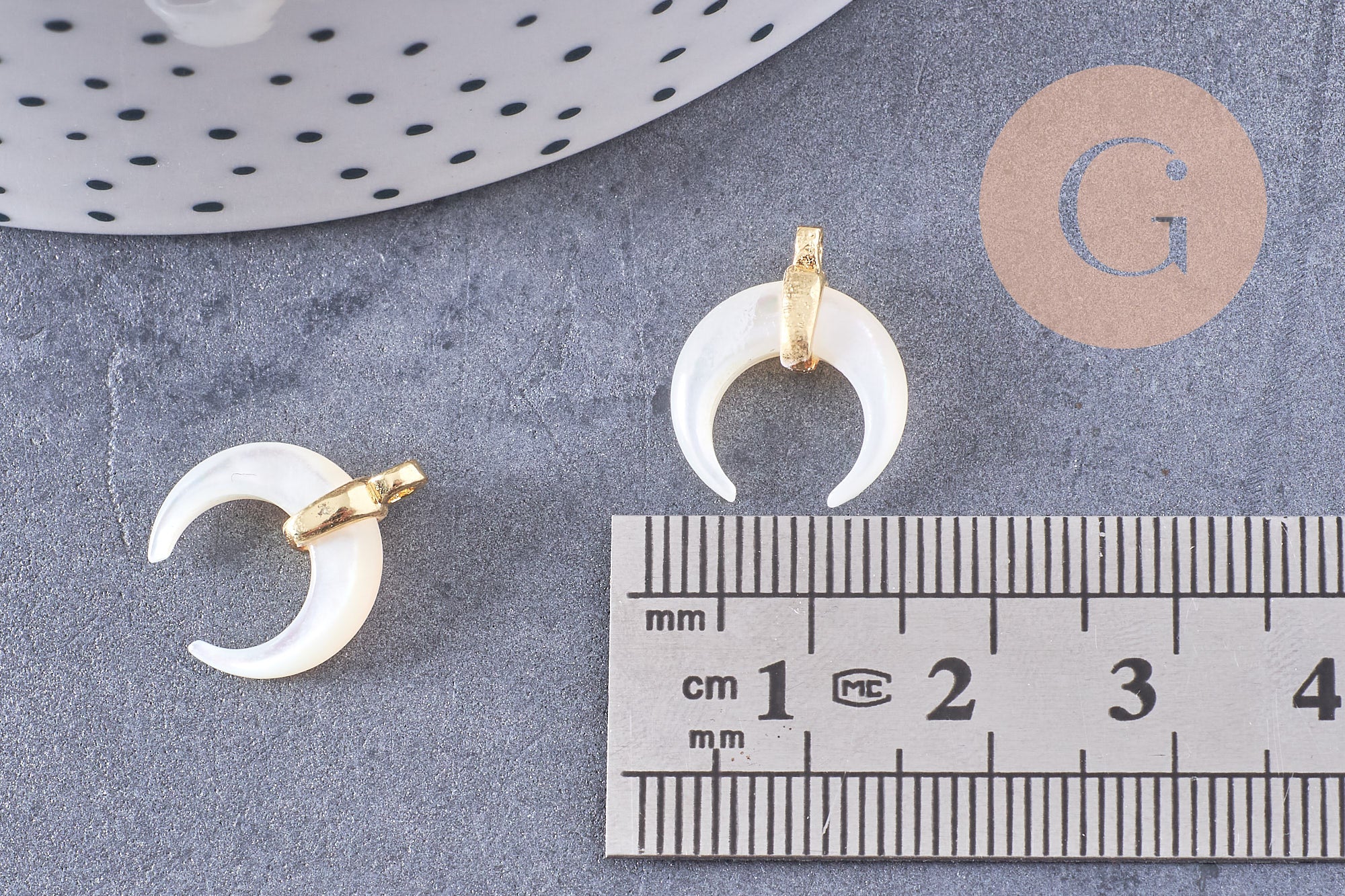 Una hermosa luna de nácar blanco natural, montada sobre una base de latón bañado en oro , perfecta para tus creaciones de joyería elegantes y bohemias. Su suave brillo y sus acabados dorados la convierten en una base refinada y versátil.