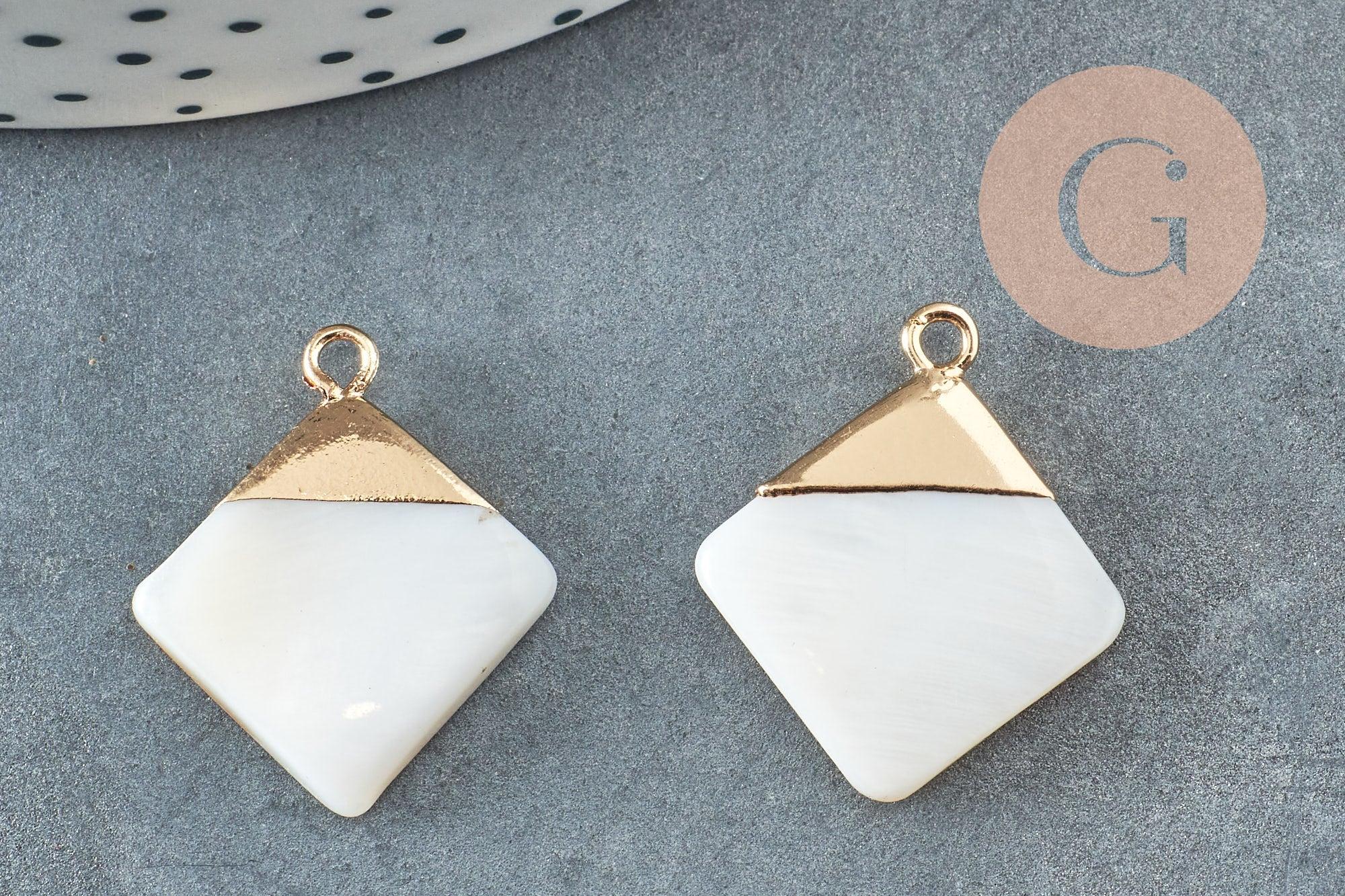 Pendentif nacre blanche naturelle doré losange,pendentif losange nacre,coquillage blanc, 23mm, x2 G2999