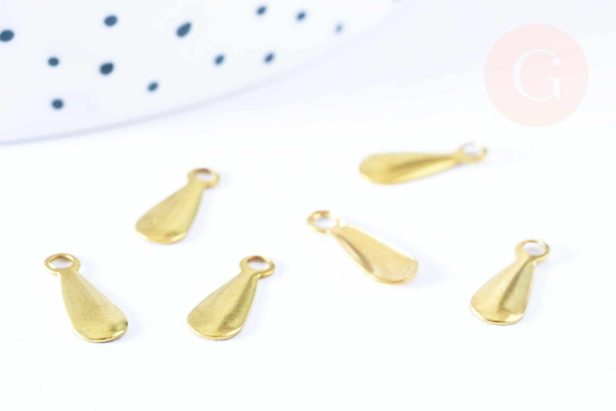 Breloque goutte laiton brut 11mm, fournitures bijoux laiton brut , x 2 (G6470)