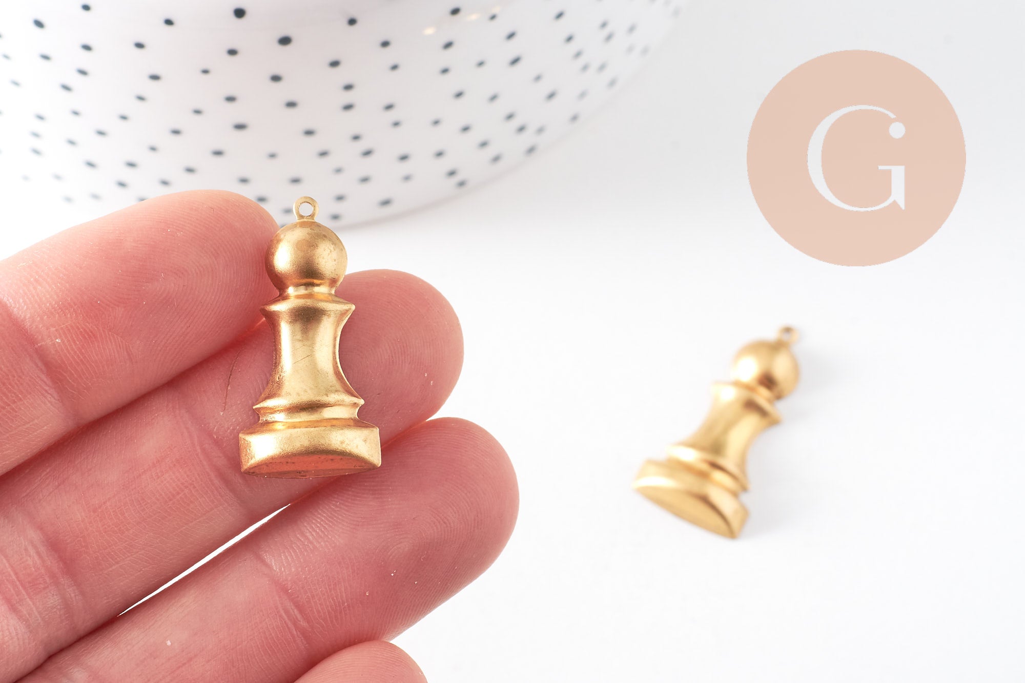 Encanto de pieza de ajedrez de latón, suministros de joyería, amuletos de latón crudo, amuleto de joyería, juegos de ajedrez, x1, 20 mm-G1493