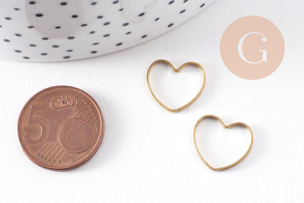 Connecteur coeur laiton brut 14mm, pendentif d'amour pour création bijoux, x10 (G10146)
