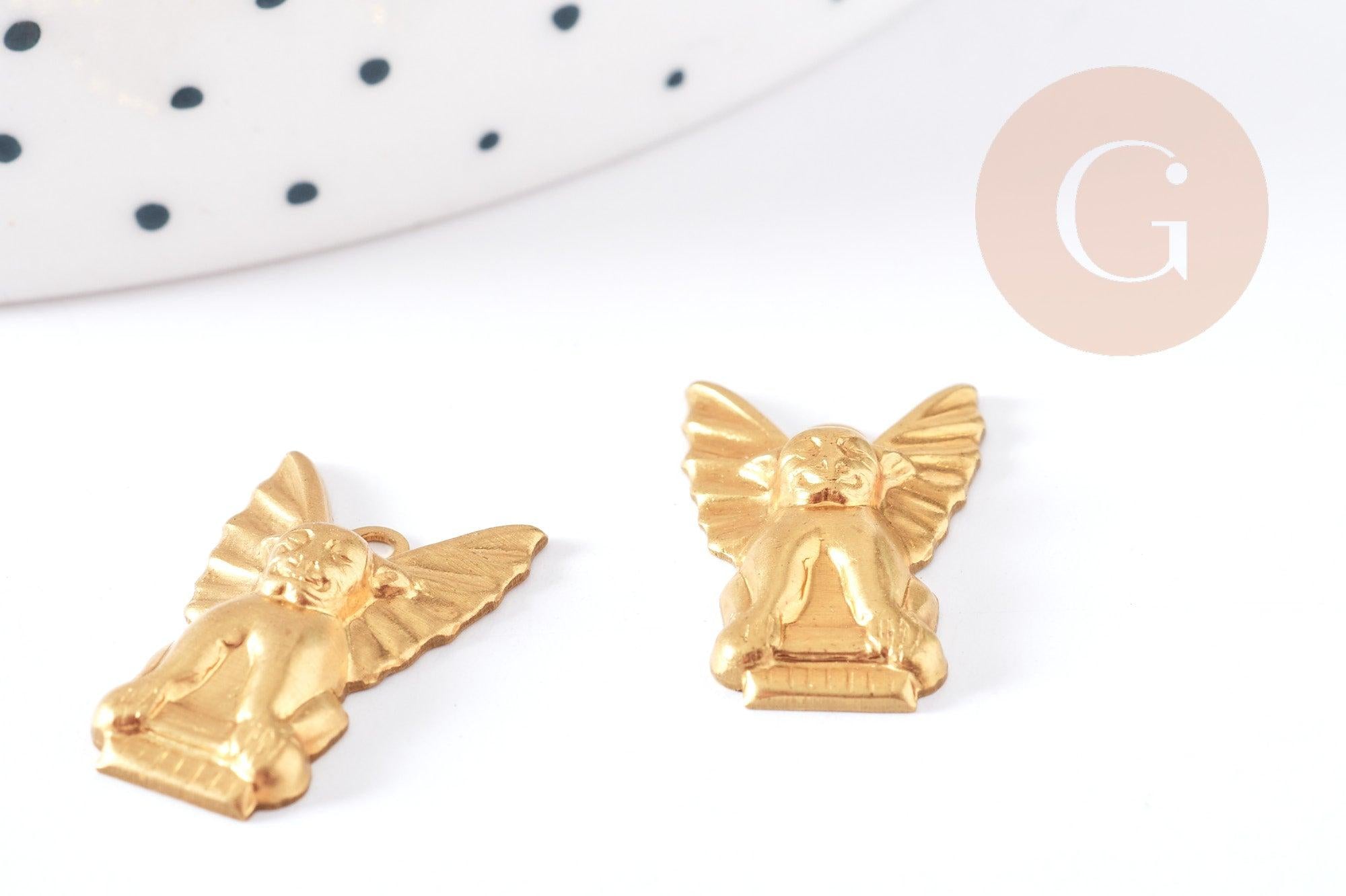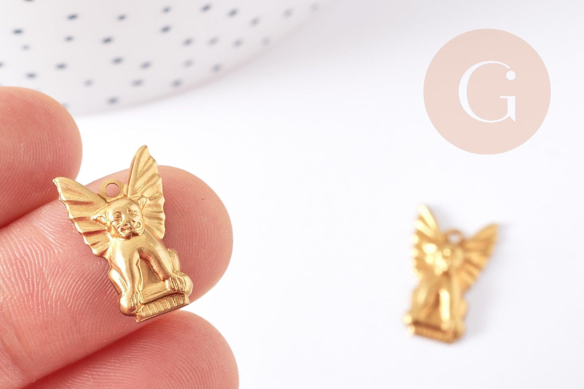 Breloque Sphynx laiton brut 21mm, bijoux fantaisie,création bijoux micromacramé x2 G8206