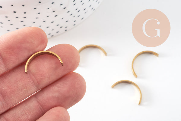 Pendentif arc demi-cercle U laiton brut, apprêt doré, sans nickel,médaille dorée,laiton brut, médaille carré,20mm,x 2-G1595