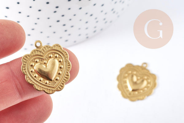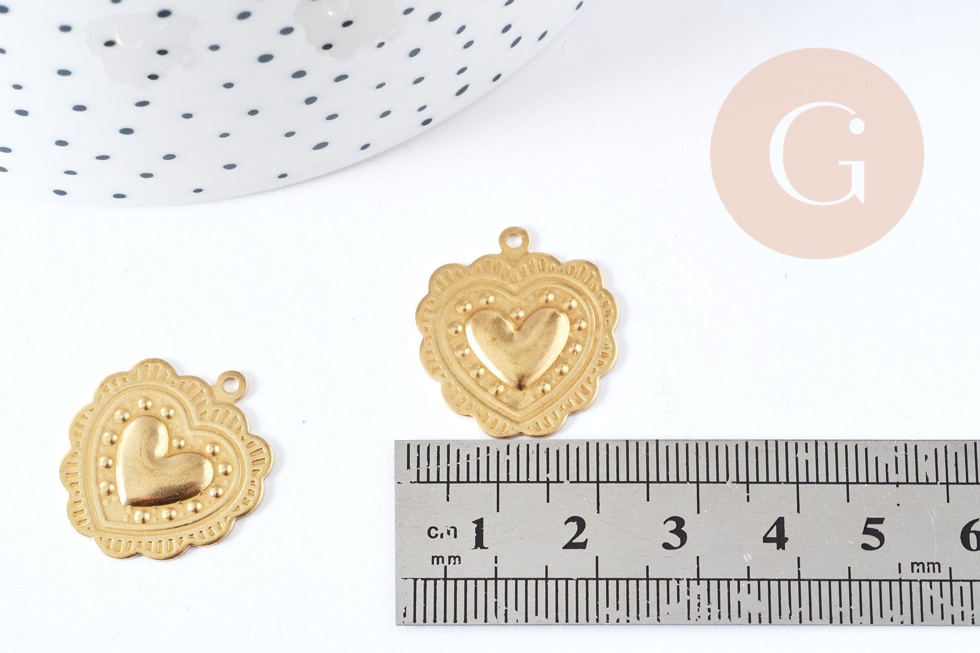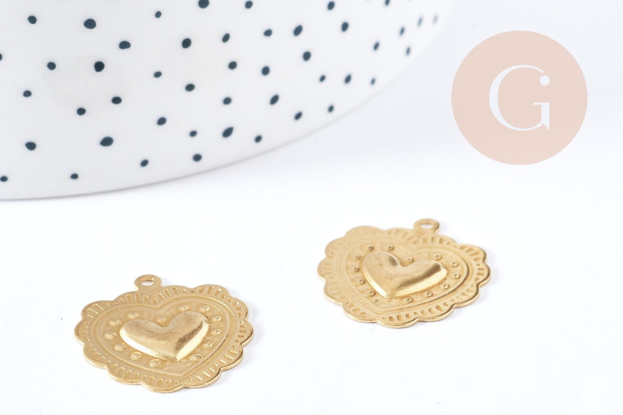 Colgante corazón abombado dentado de latón crudo 22 mm, x1 (G8950)