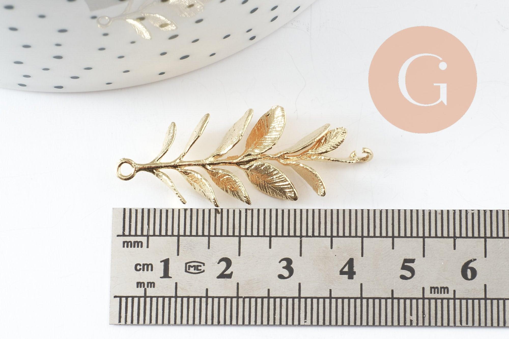 Pendentif feuille laurier laiton,breloque laiton brut, feuille laurier bijoux,pendentif laiton brut, 43mm, x2 (G0432)