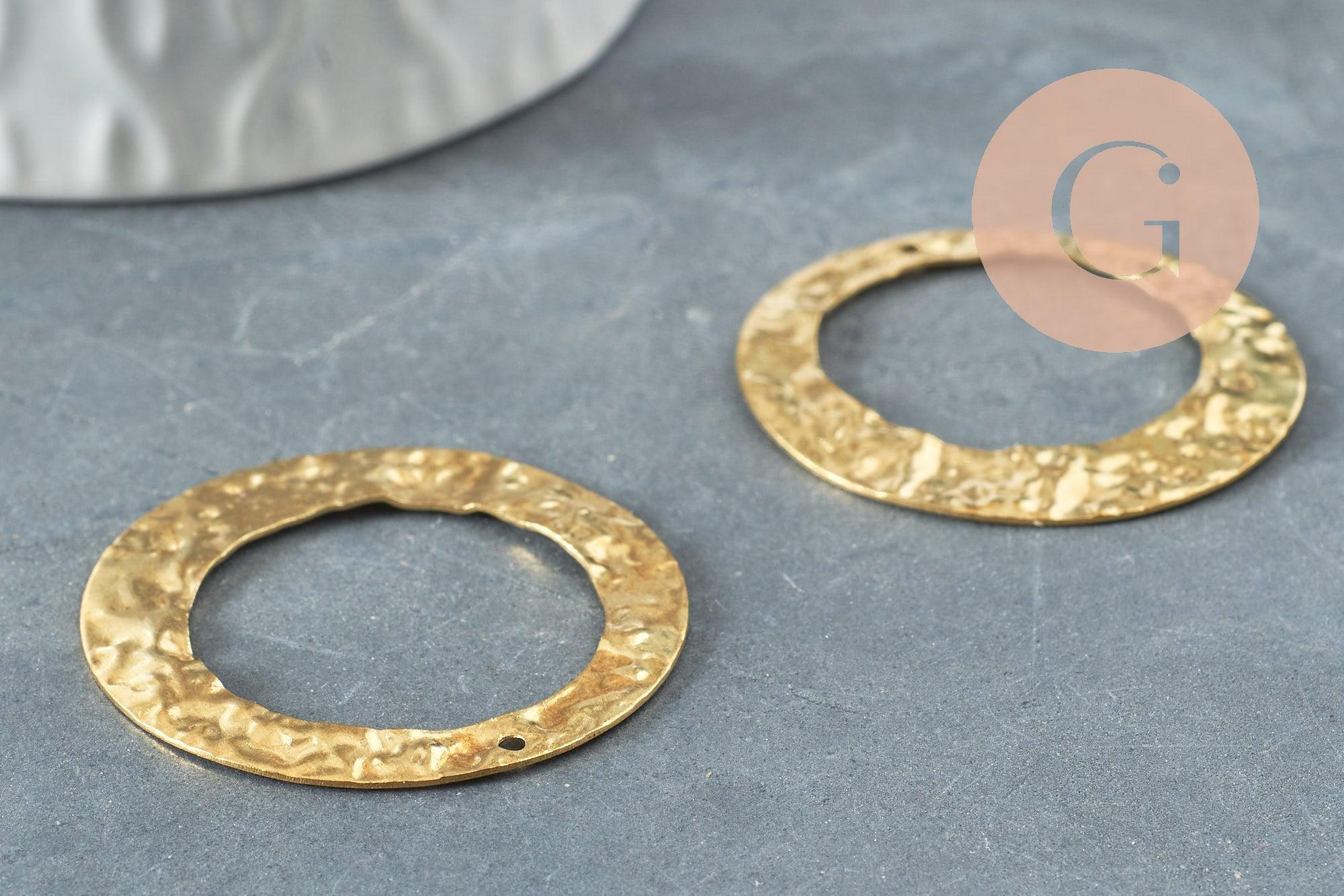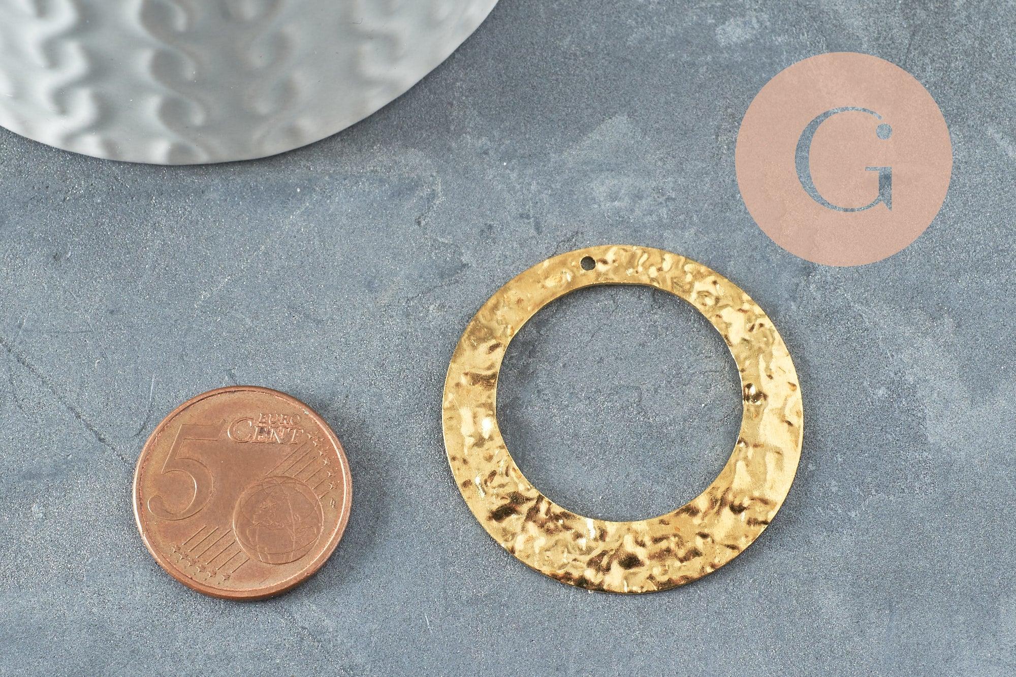 Pendentif médaille cercle martelée laiton brut 35mm, apprêt doré sans nickel, x2 G0596
