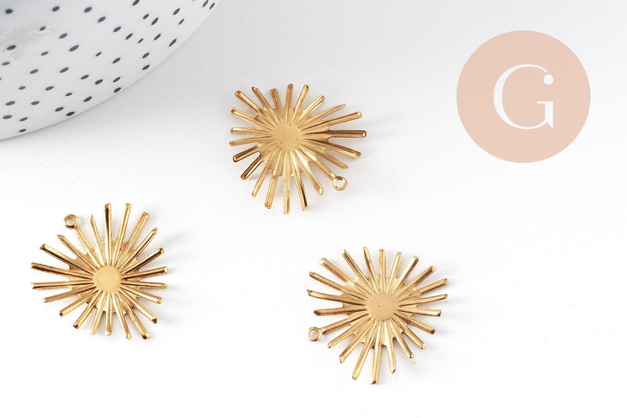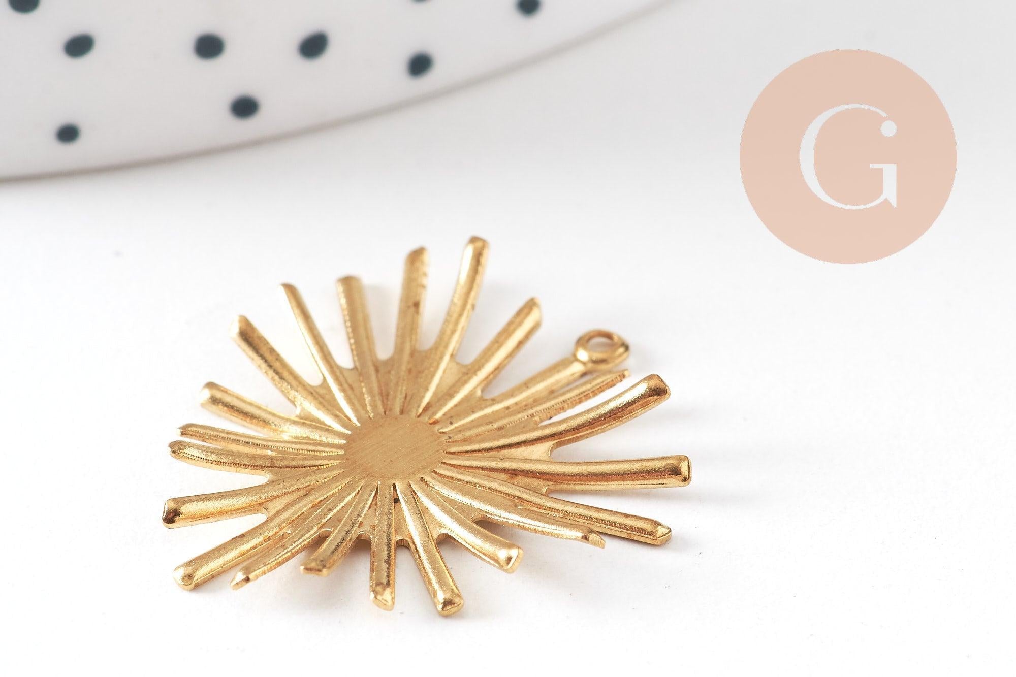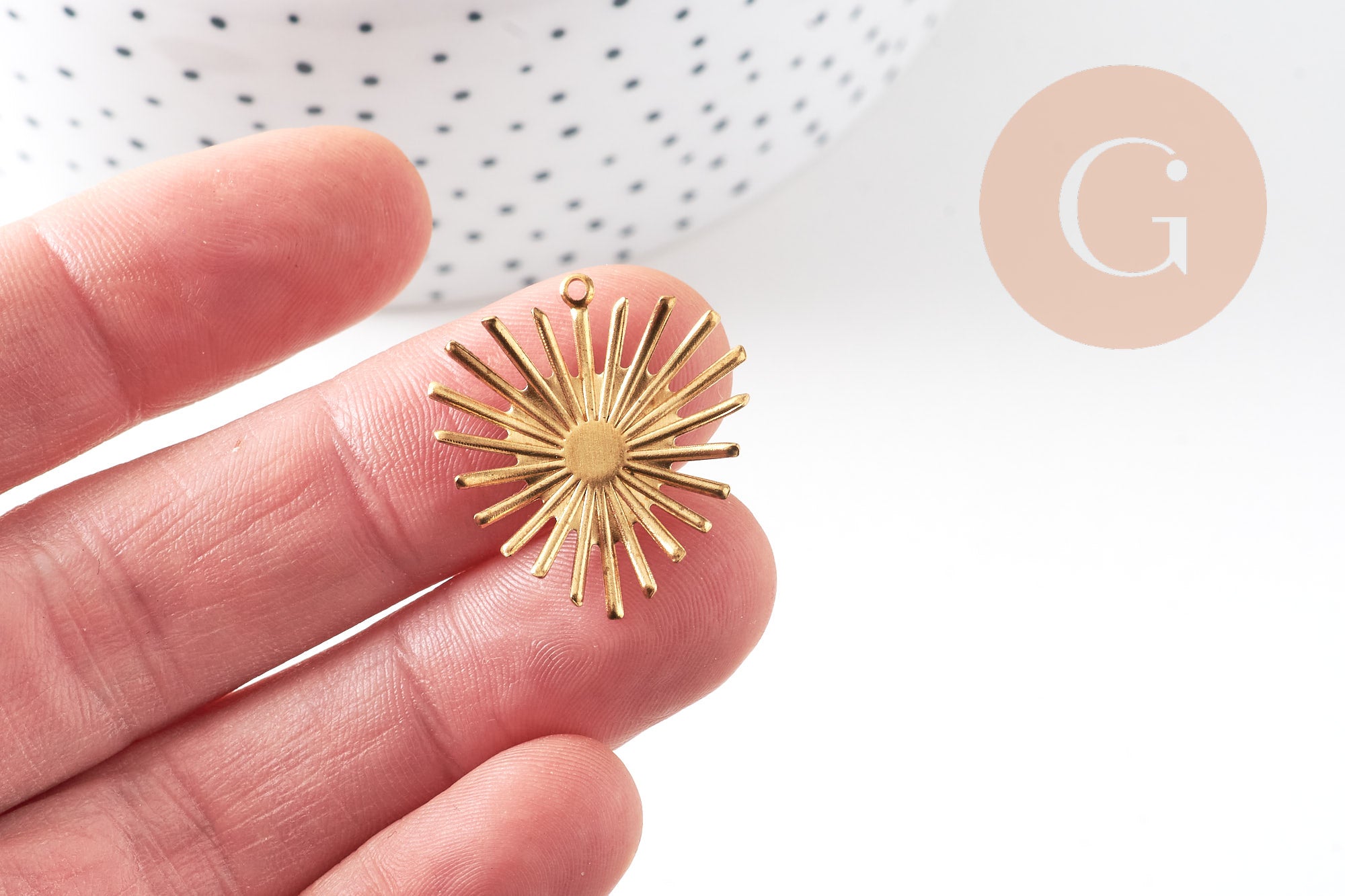 Colgante de medalla de latón crudo con forma de corazón de sol, base bañada en oro sin níquel, medalla bañada en oro en latón crudo, 26 x 24 mm, juego de 2