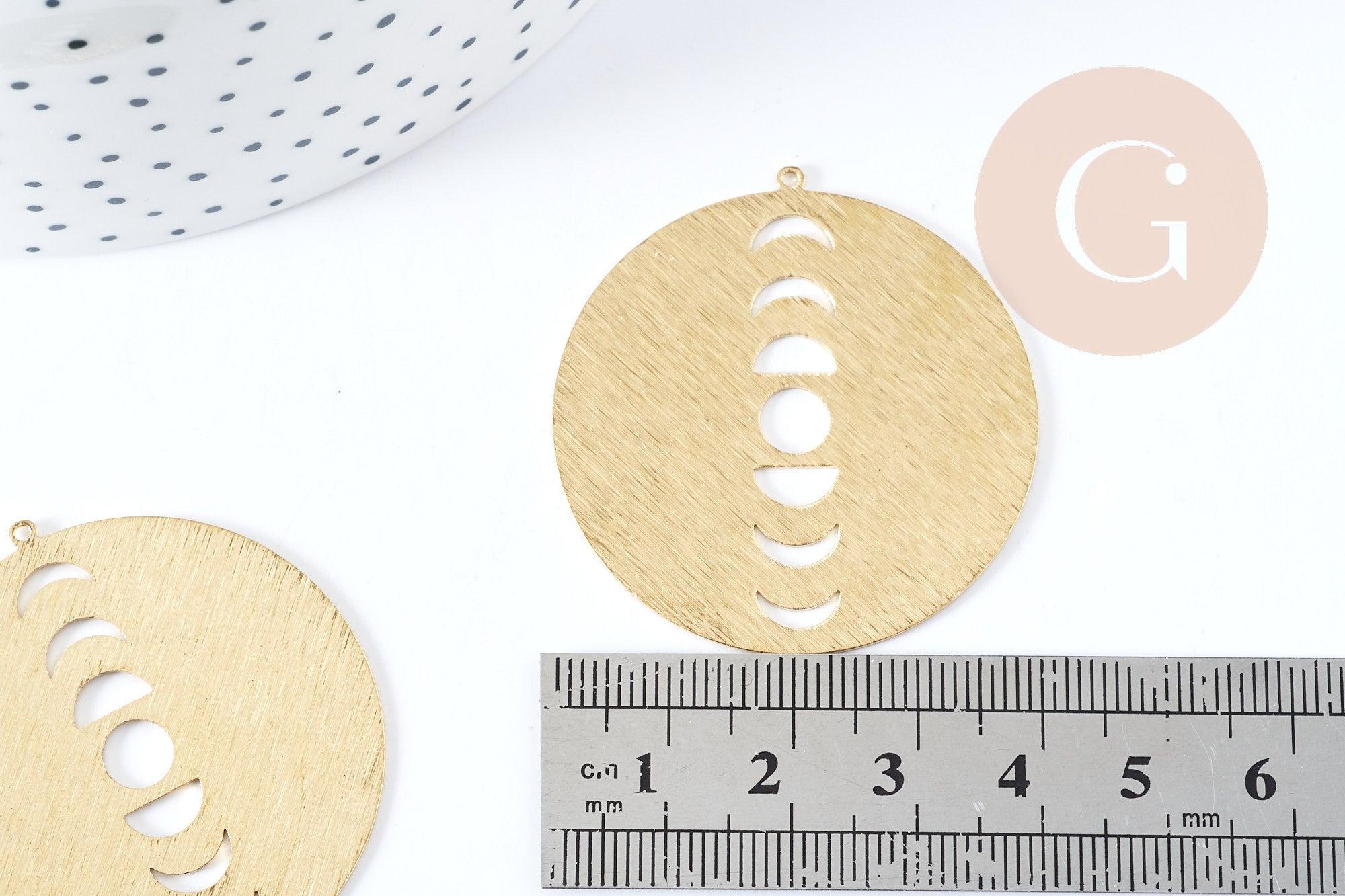 Un colgante de fase lunar redondo en latón crudo cepillado, acabado dorado sin níquel, ideal para crear joyas únicas y simbólicas .