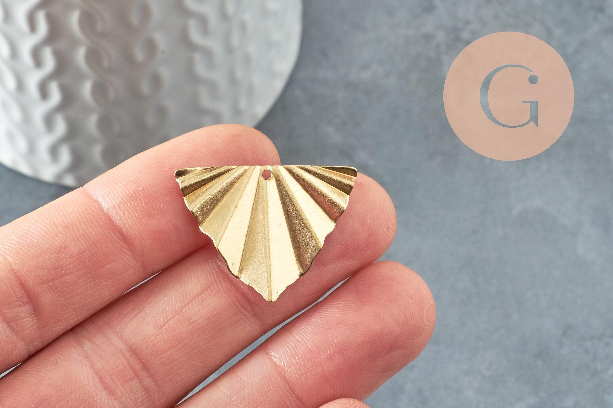 Colgante triangular abanico plegado latón crudo liso, imprimación bañada en oro sin níquel, colgante bañado en oro en latón crudo, 29x22mm, juego de 2