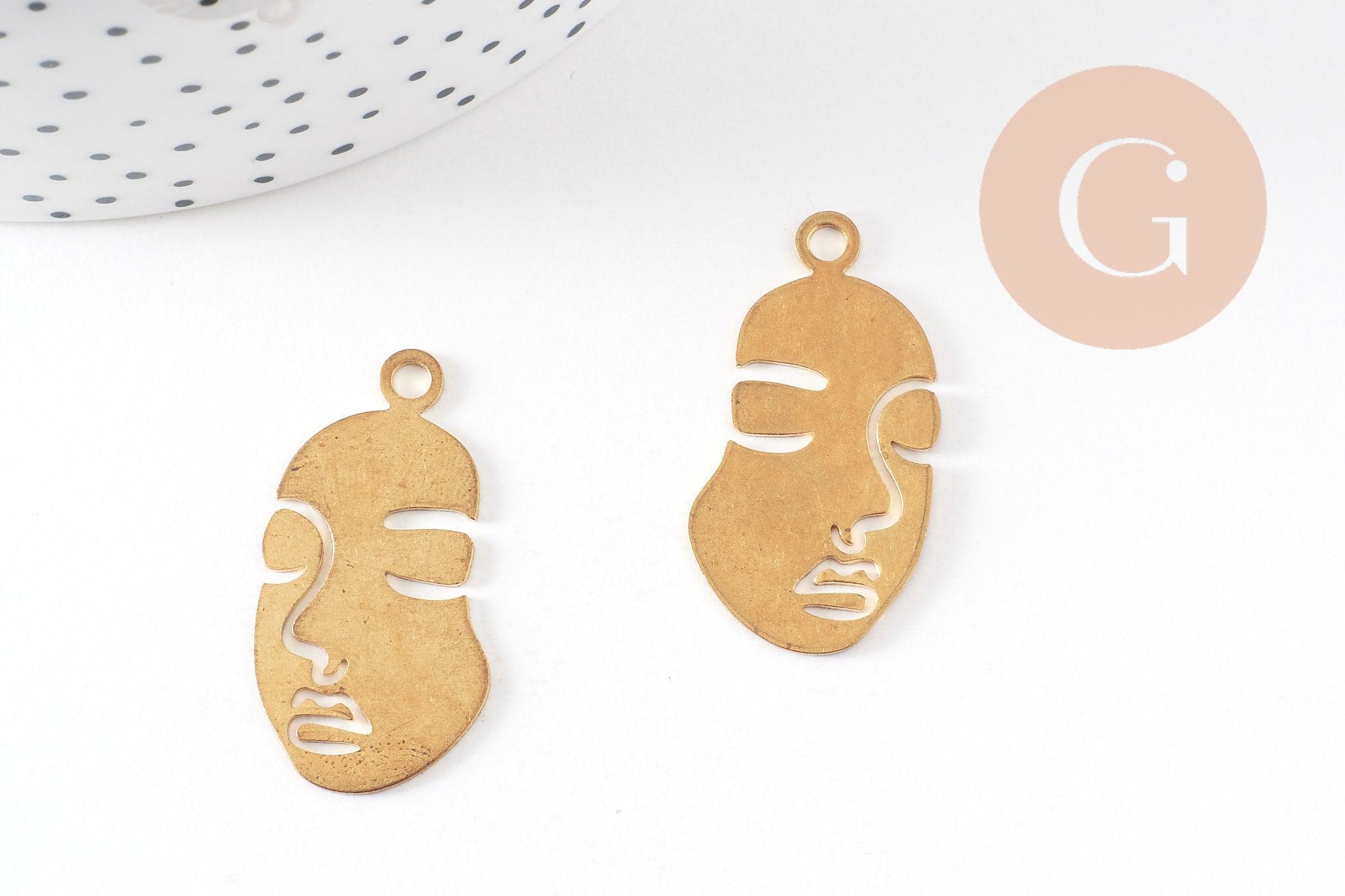 Para adoptar la tendencia minimalista, adopte inmediatamente este colgante de rostro en latón bañado en oro crudo con anillo.