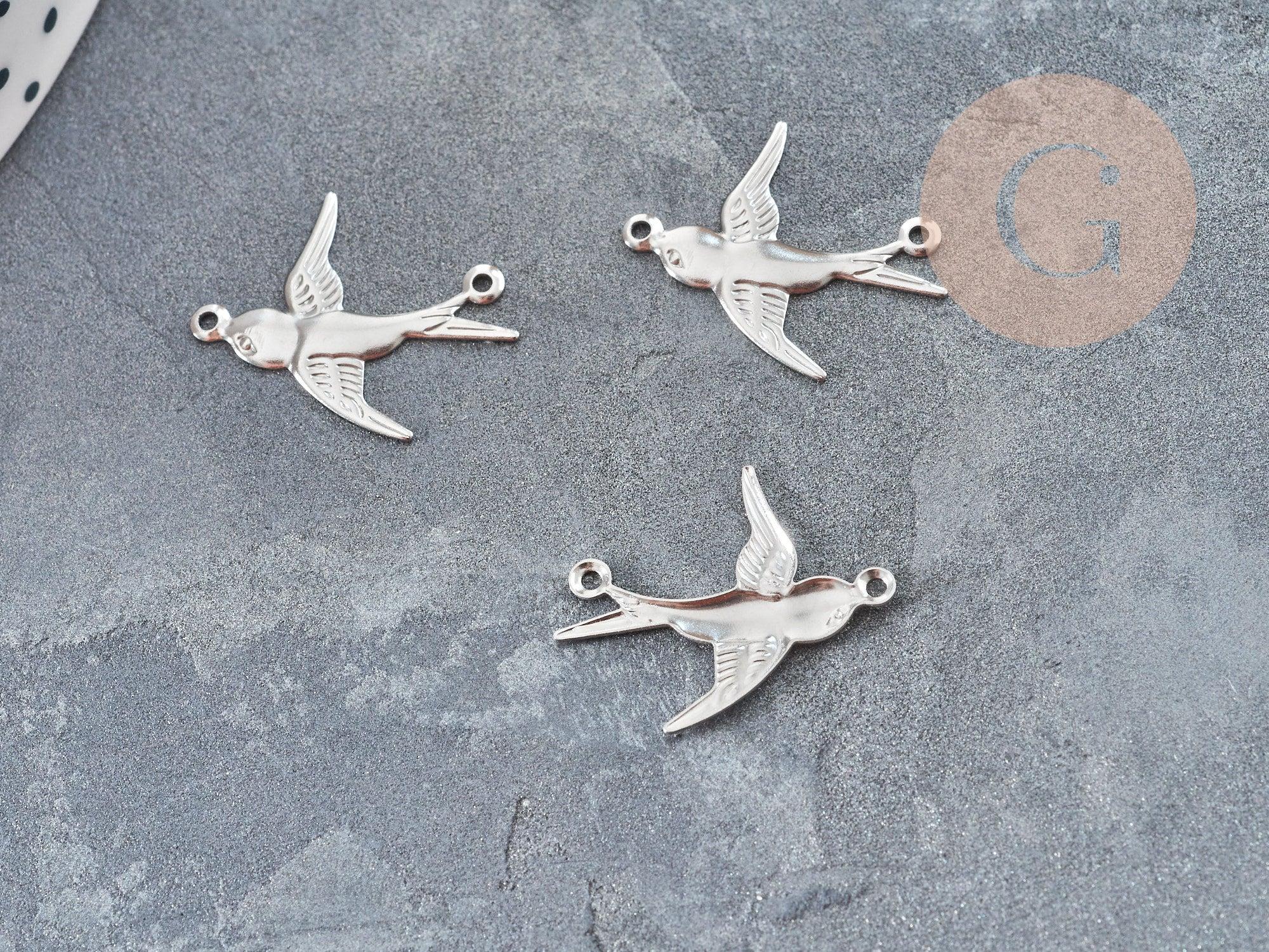 Adopte este colgante con conector de golondrina en acero inoxidable 201 bañado en plata .