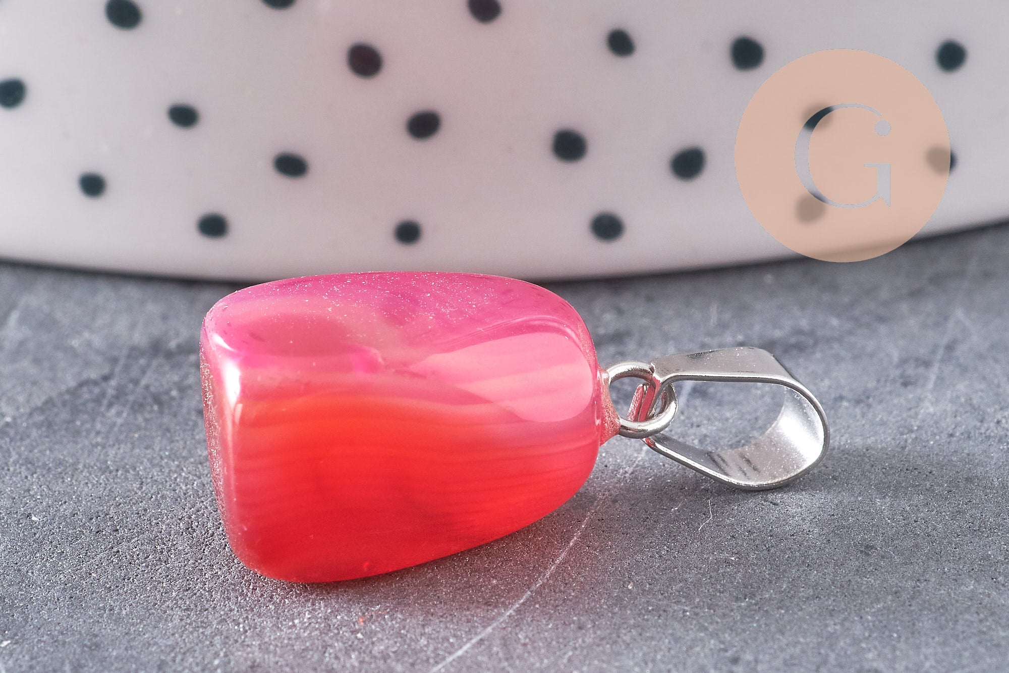 Colgante de ágata rosa rayada con soporte de acero plateado, colgante de piedra, ágata natural, creación de joyas, piedra natural, 23mm, x1, G3901