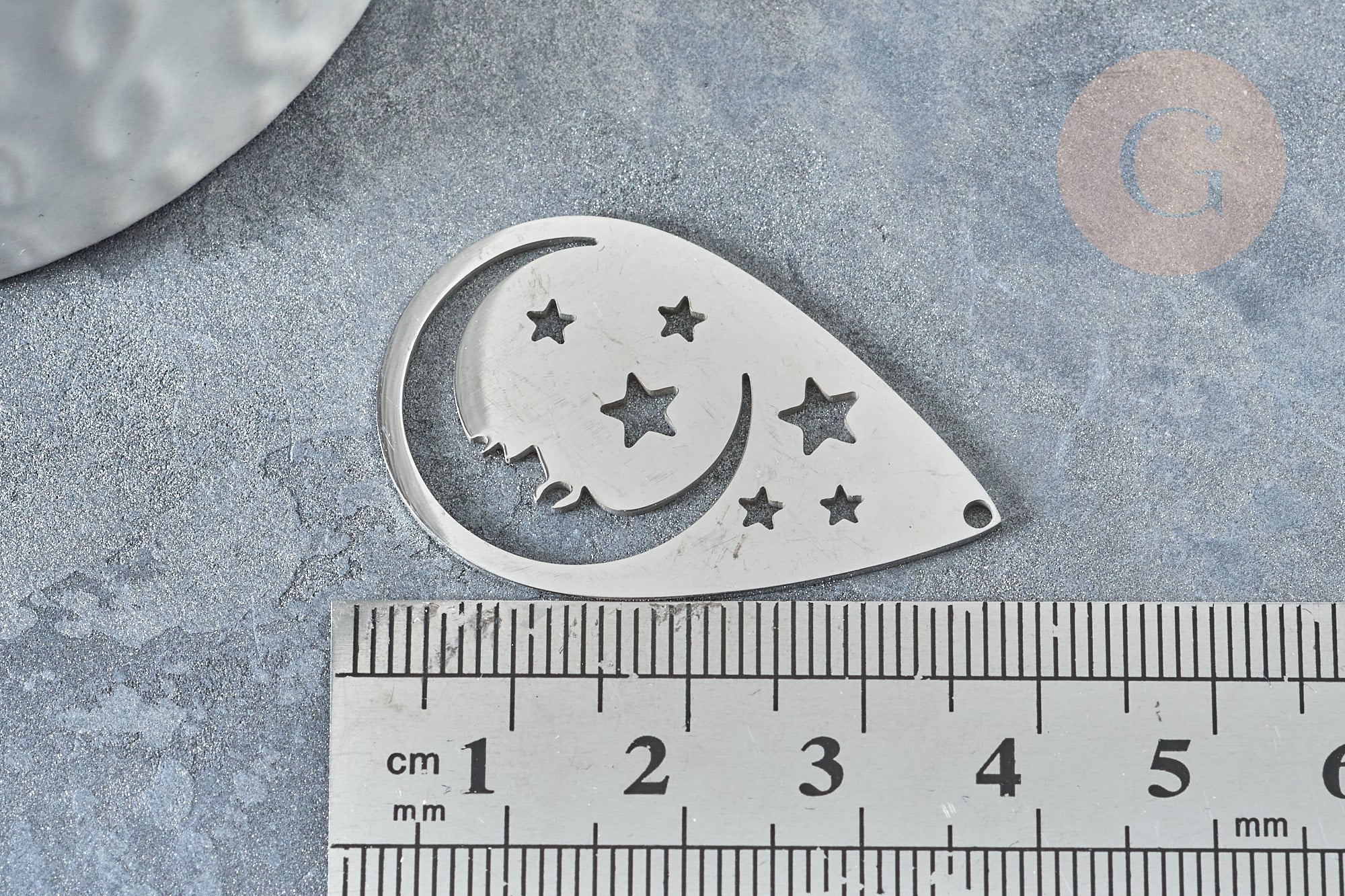 Colgante de plata gota luna y estrellas acero inoxidable 201 37,5 mm, charm acero inoxidable platino x1 G7613