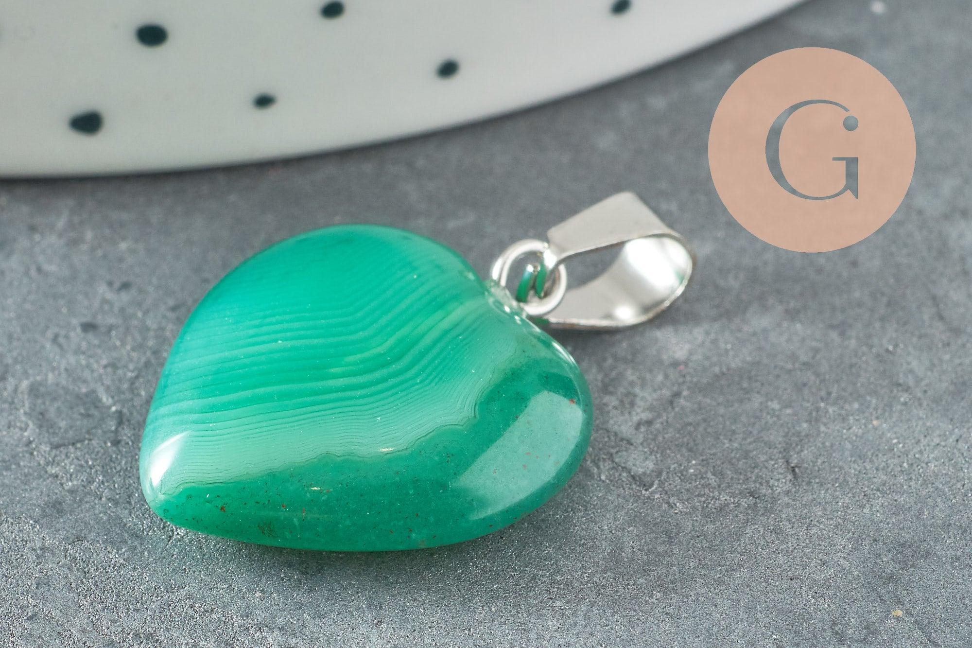 Déjese seducir por este colgante de corazón de ágata natural teñida sobre su soporte de plata. Podrás crear magníficos collares, collares y pendientes con este colgante tan moderno.