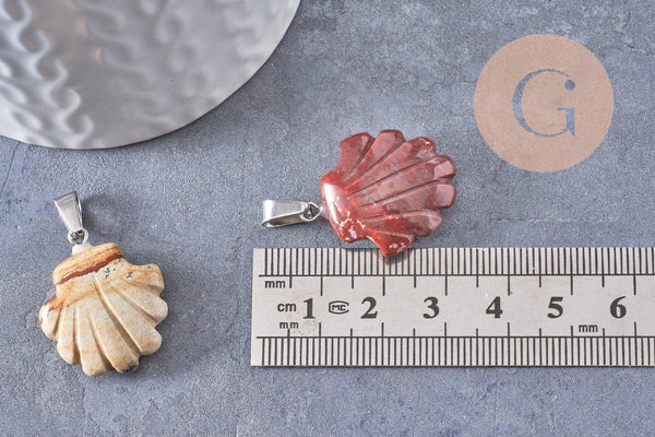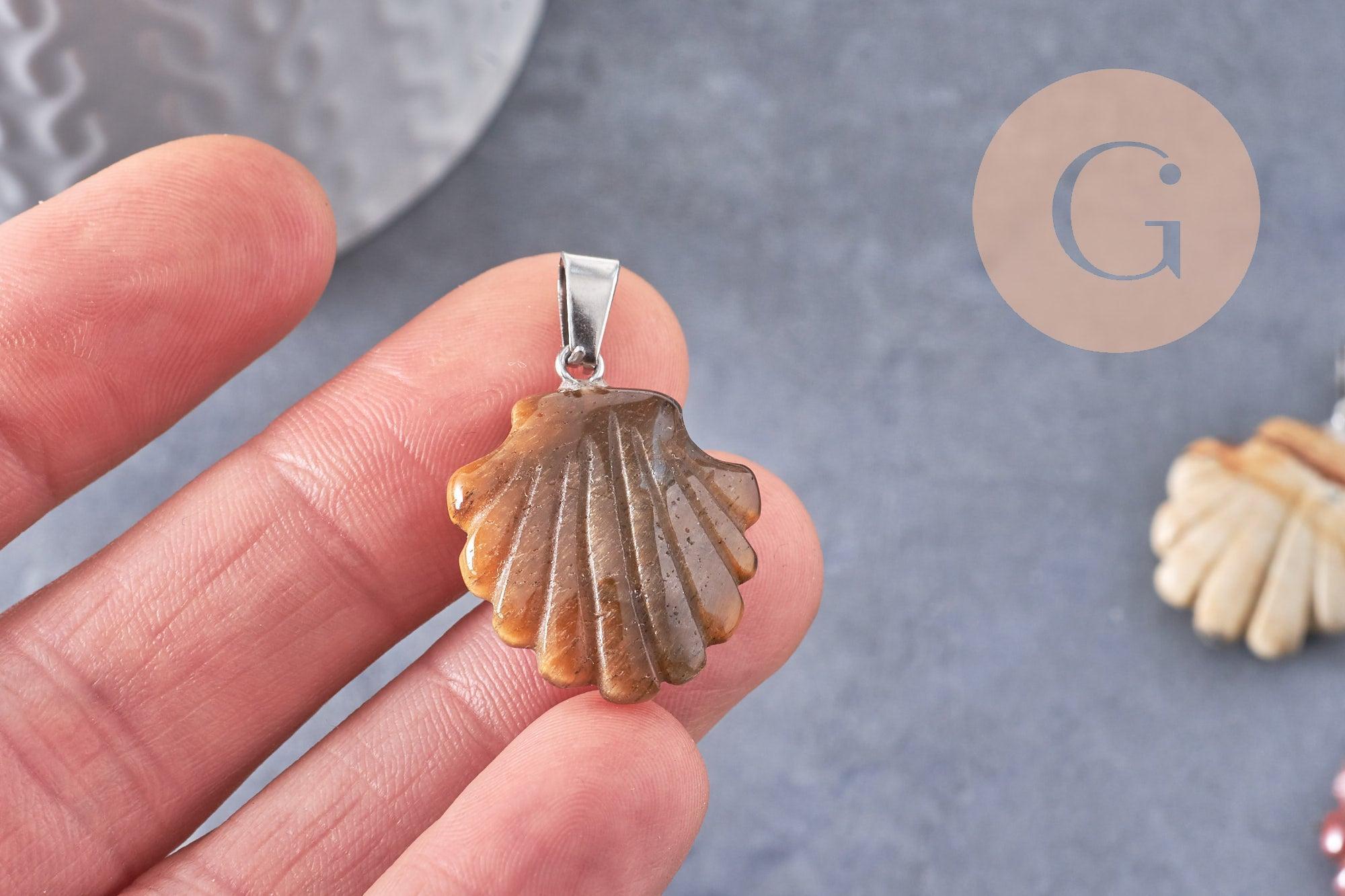Añade un toque marinero y elegante a tus creaciones con este colgante en forma de concha , disponible en diferentes piedras naturales y sintéticas.