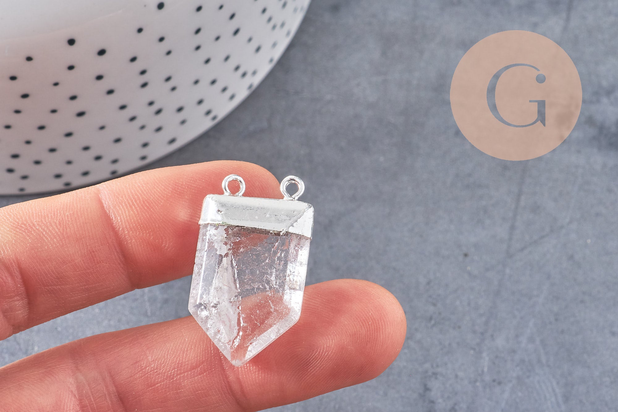 Déjese seducir por este pequeño colgante hexagonal de cuarzo transparente con soporte de plata