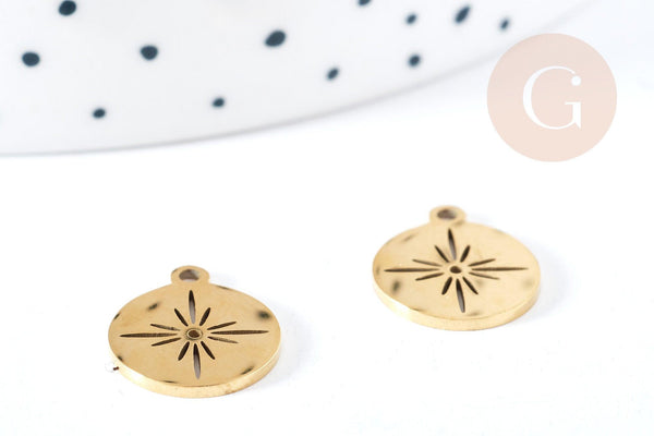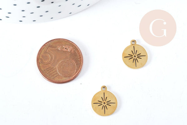 Pendentif dond plat étoile acier doré 304 inoxydable 14mm, x1 (G8723)