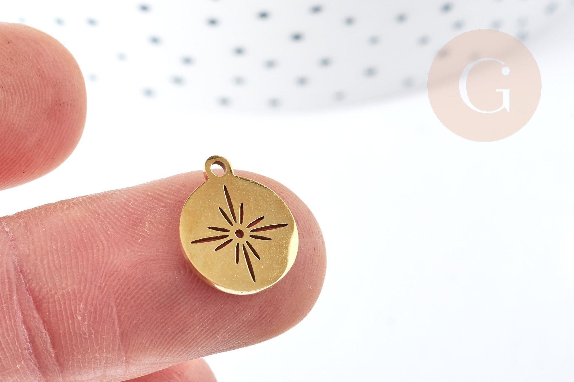El colgante de estrella redonda plana en acero bañado en oro es un elemento único para crear joyas de acero inoxidable.