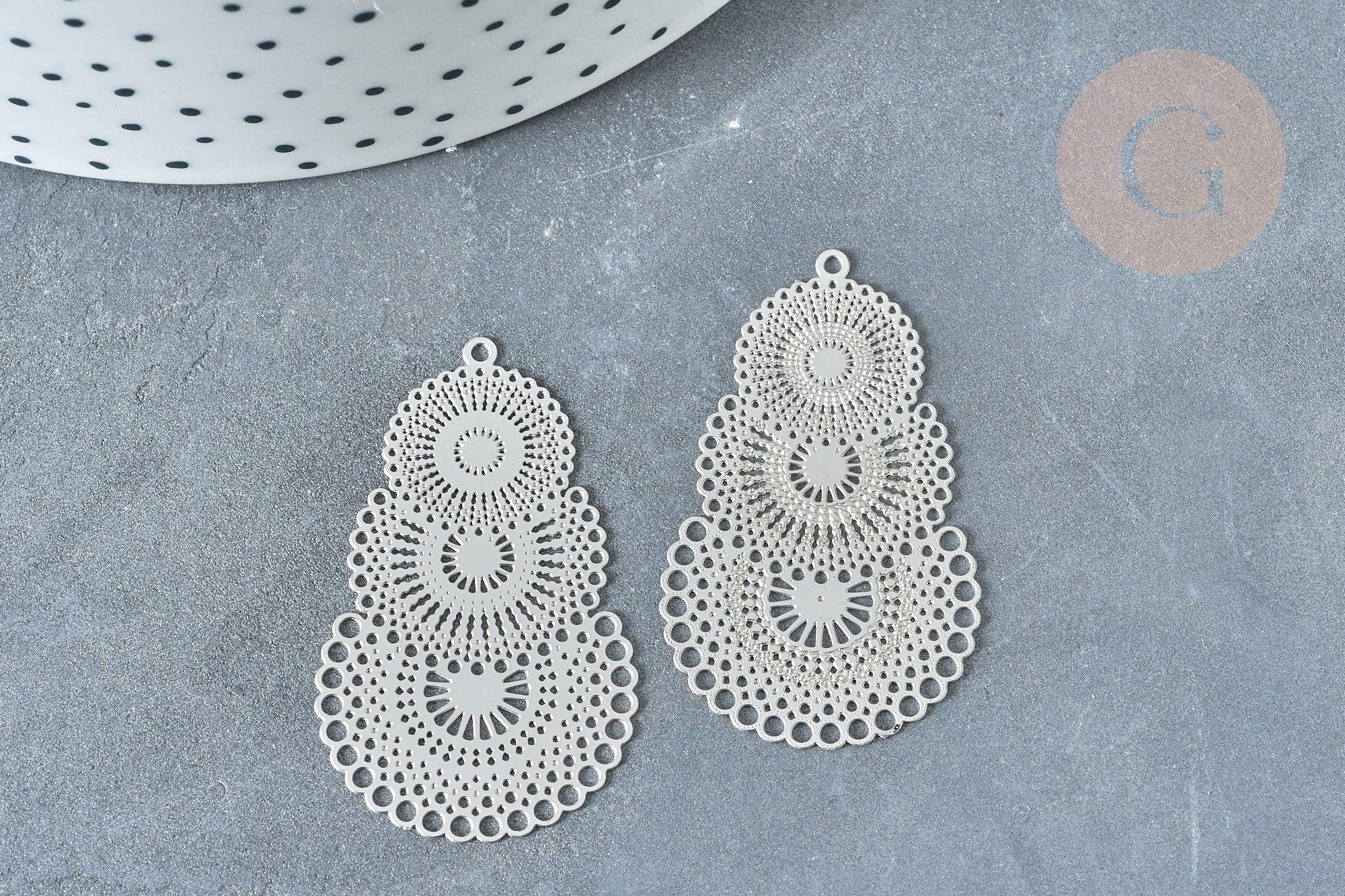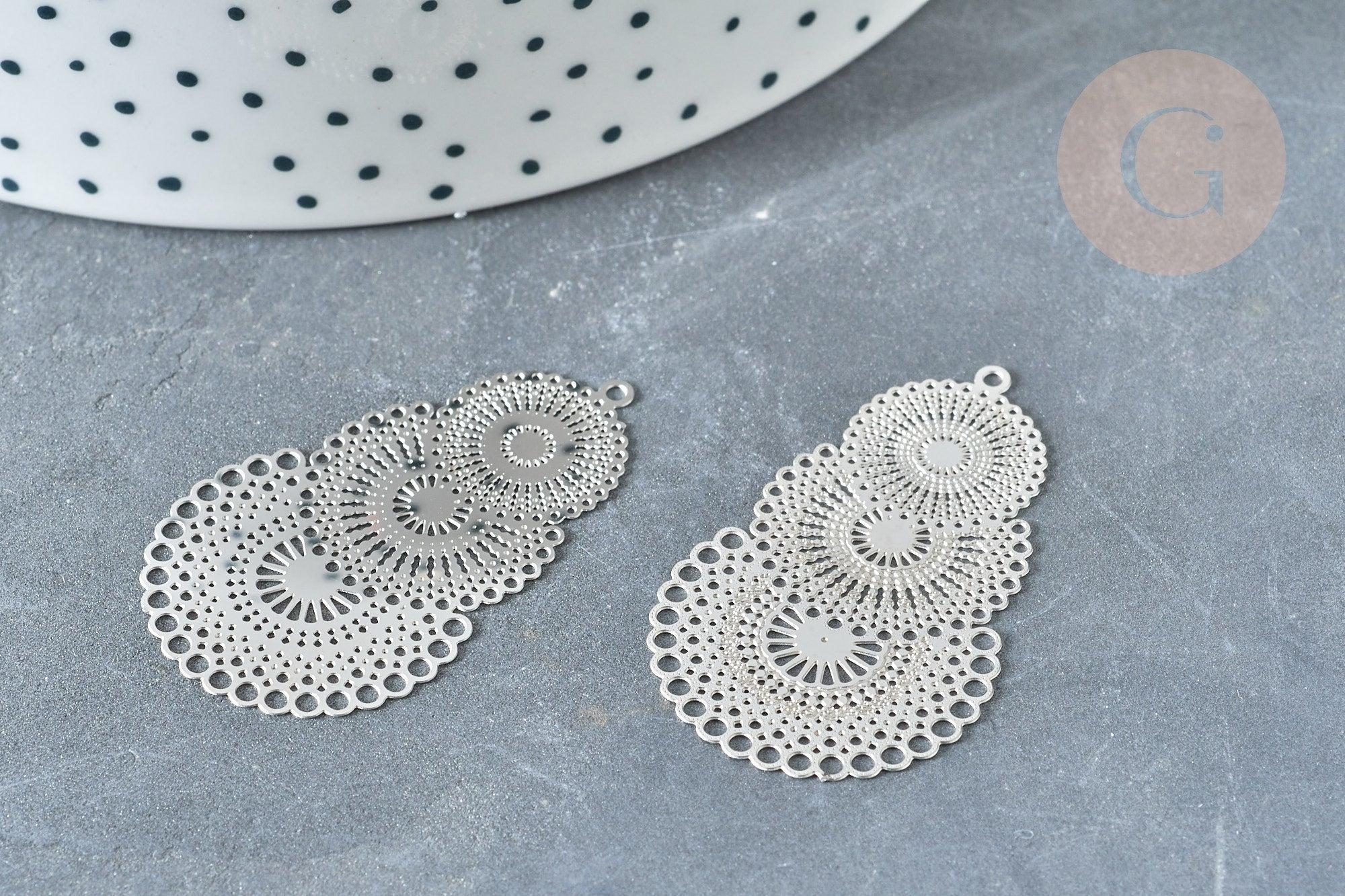 Colgante con estampado de encaje de filigrana, acero inoxidable 201, platino, 40 mm, x2 (G8014)