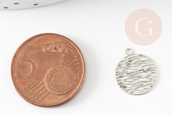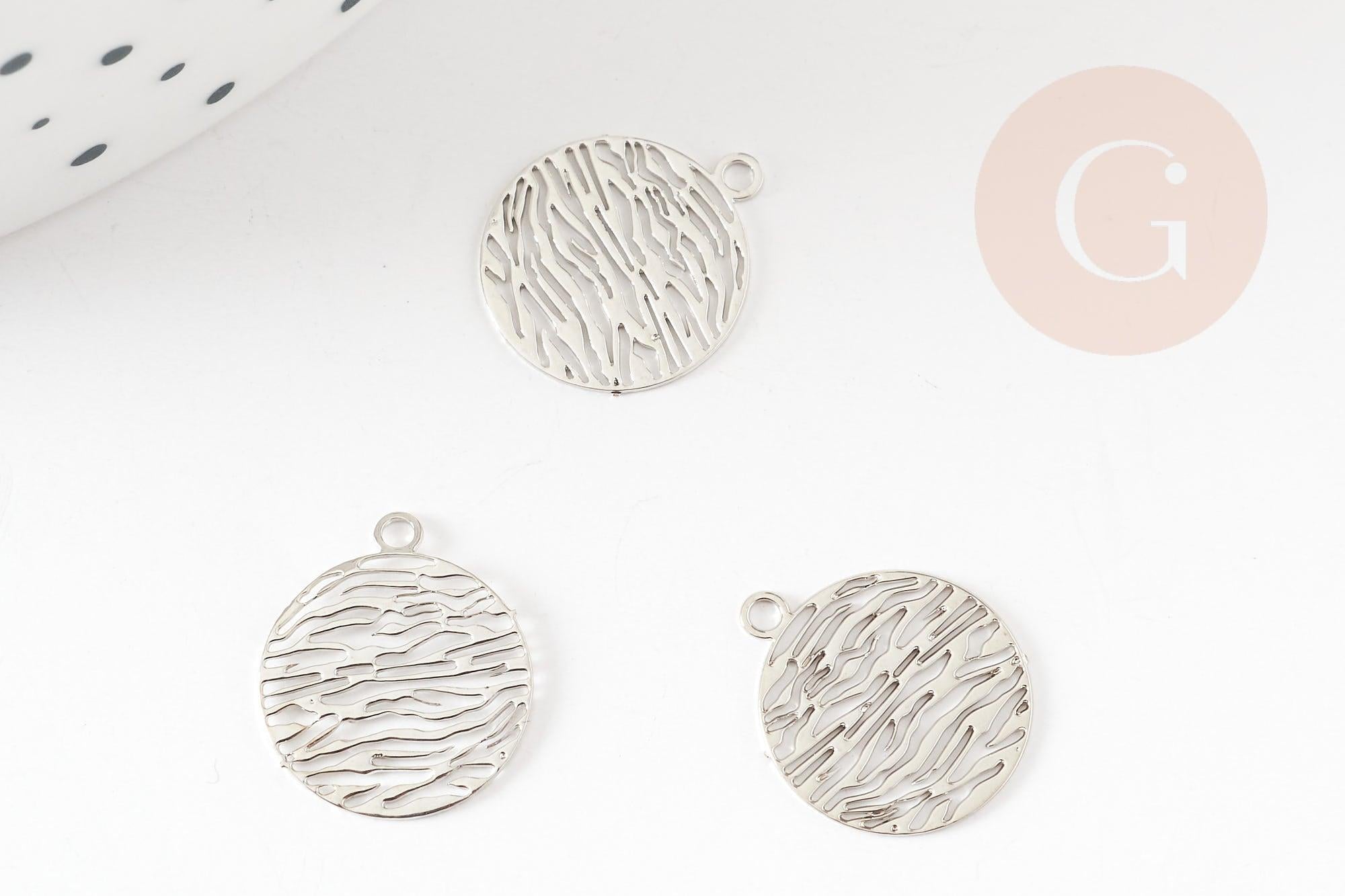 Colgante redondo de filigrana estampado con patrón de ondas, acabado en latón y platino, 14 mm, colgante ligero para la fabricación de joyas, plata, x2 (G9298)