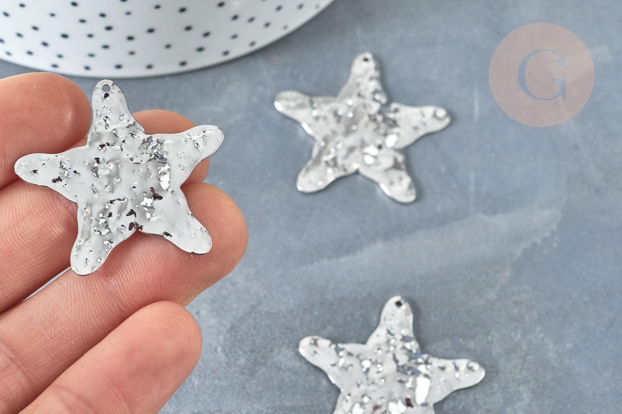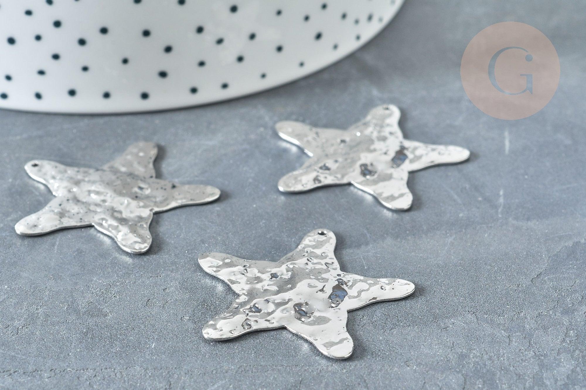 Colgante estrella martillado latón platino brillante 36 mm, colgante estrella texturizado, creación de joyería de plata, x1 G8020