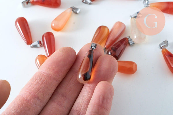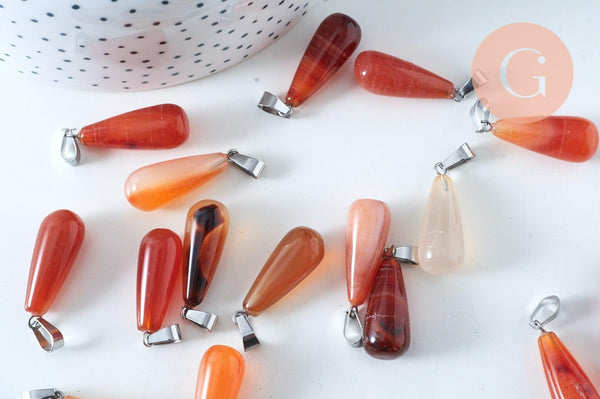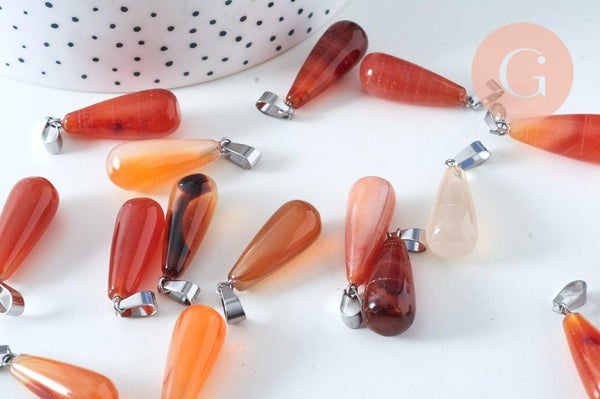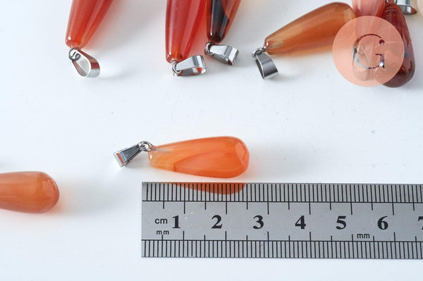Colgante de gota de cornalina natural acero platino laminado 30 mm, colgante de piedra de acero inoxidable de piedra natural, x1, G6169
