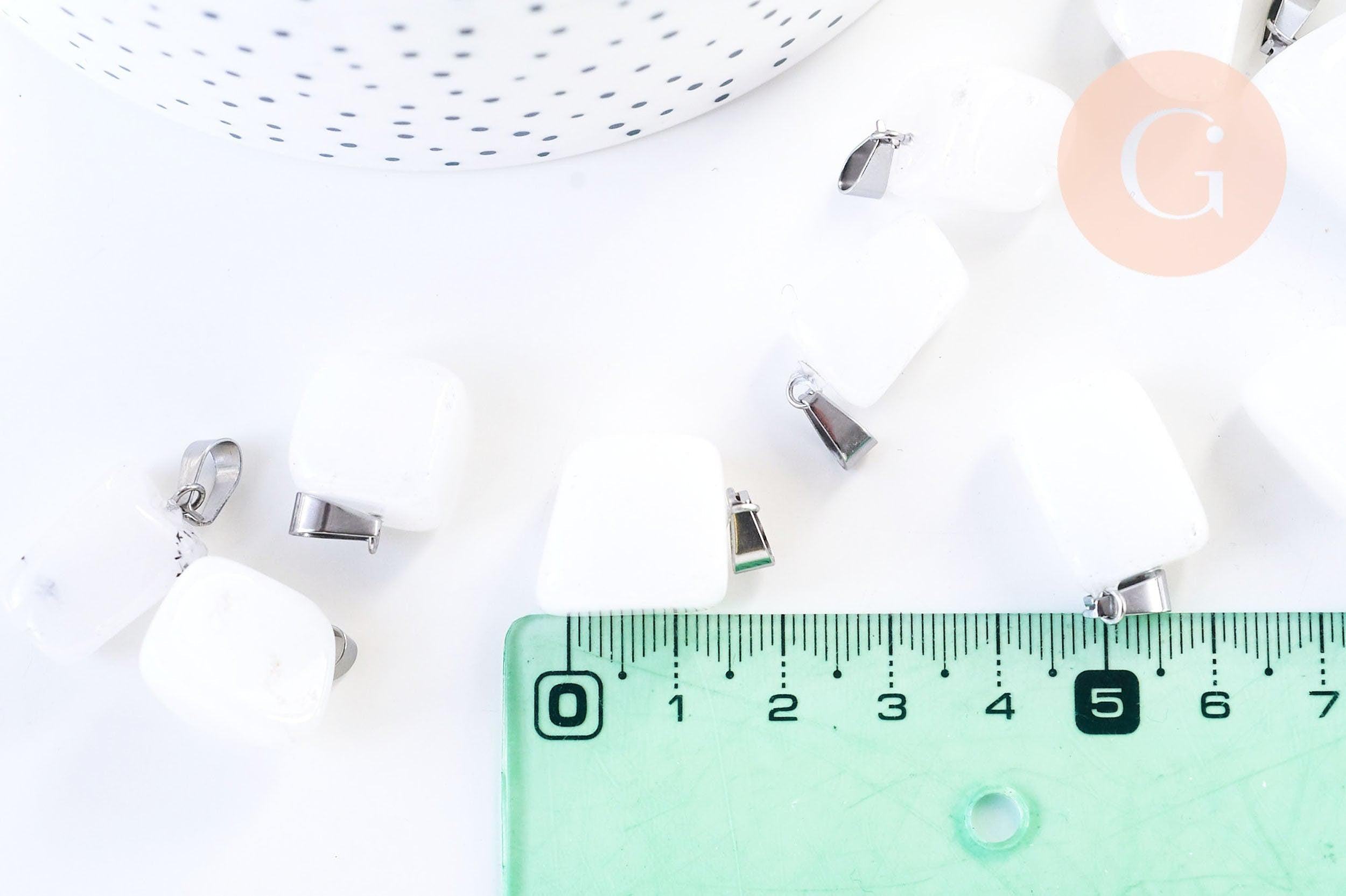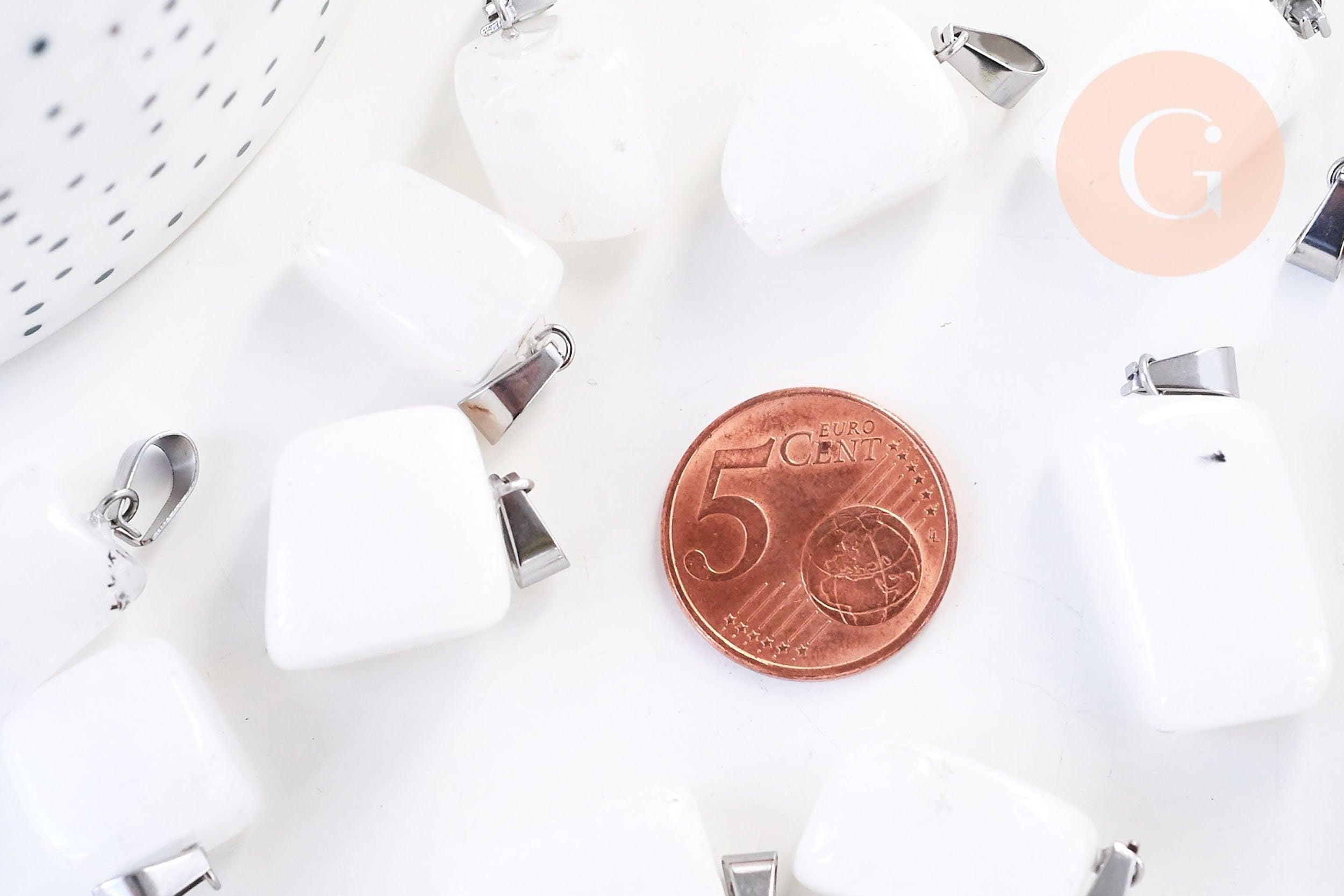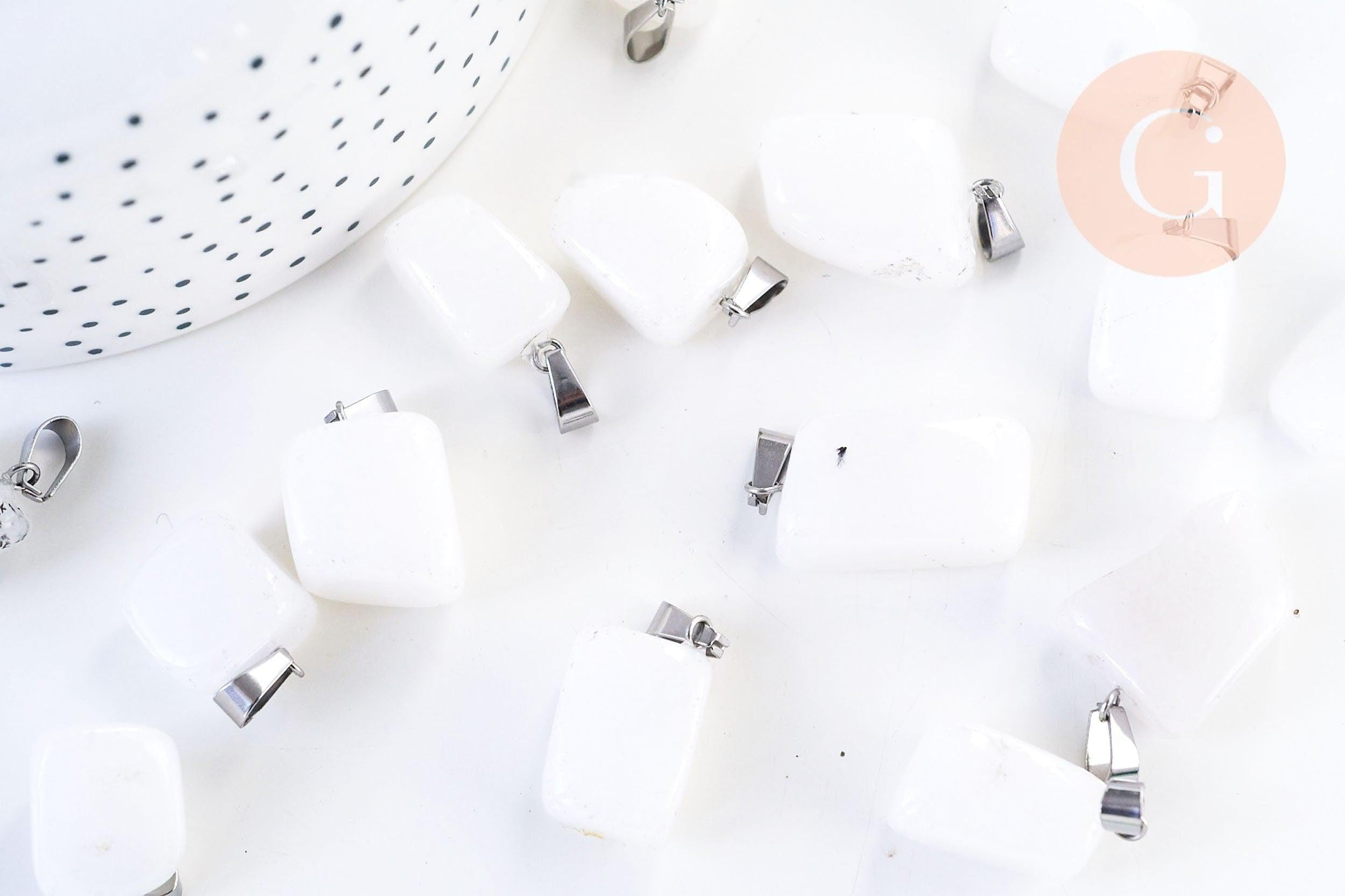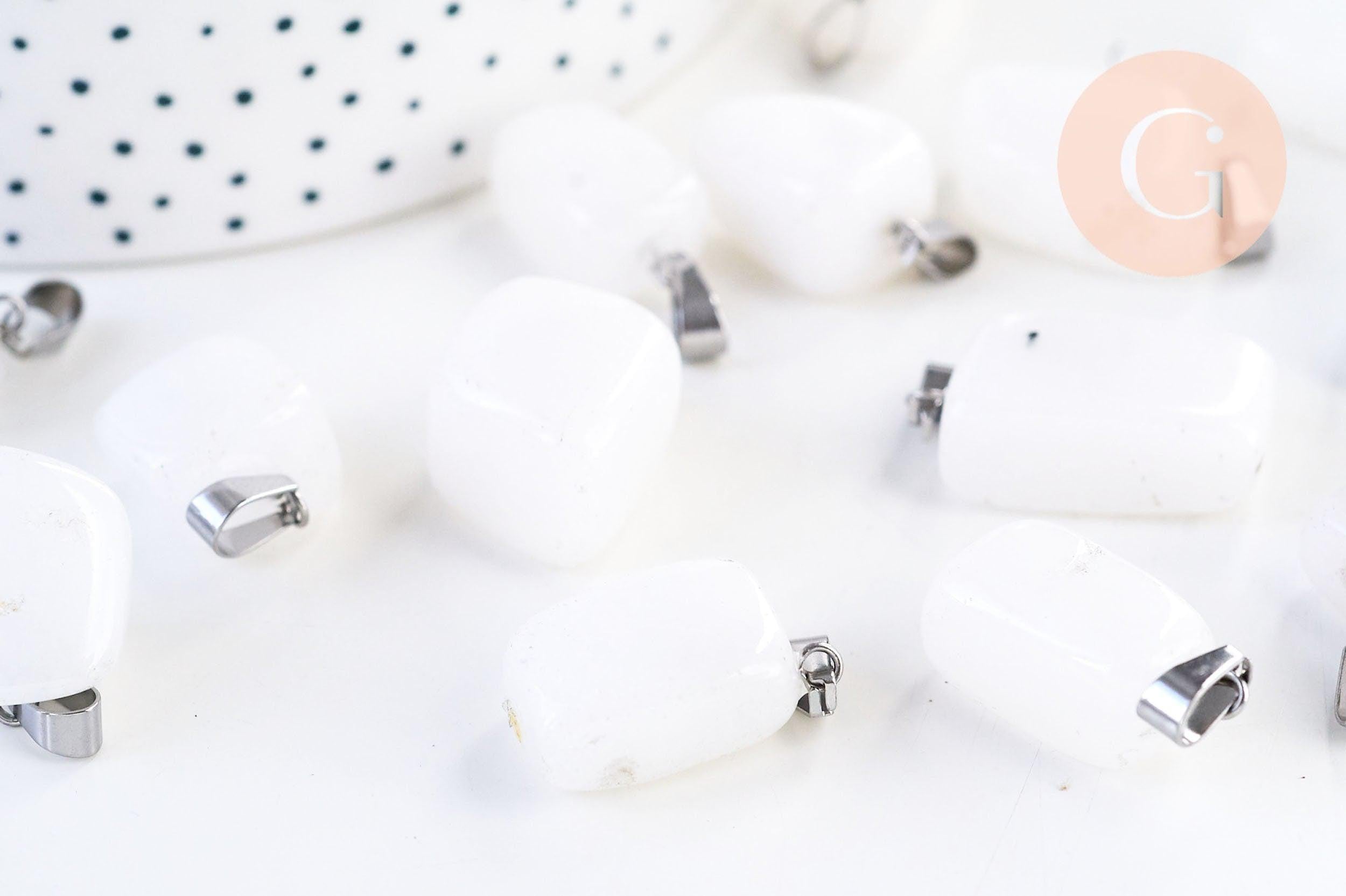 Colgante de jade blanco enrollado en acero platino, colgante de piedra de acero inoxidable, joyería colgante de piedra natural, 15-35mm, x1 G5827