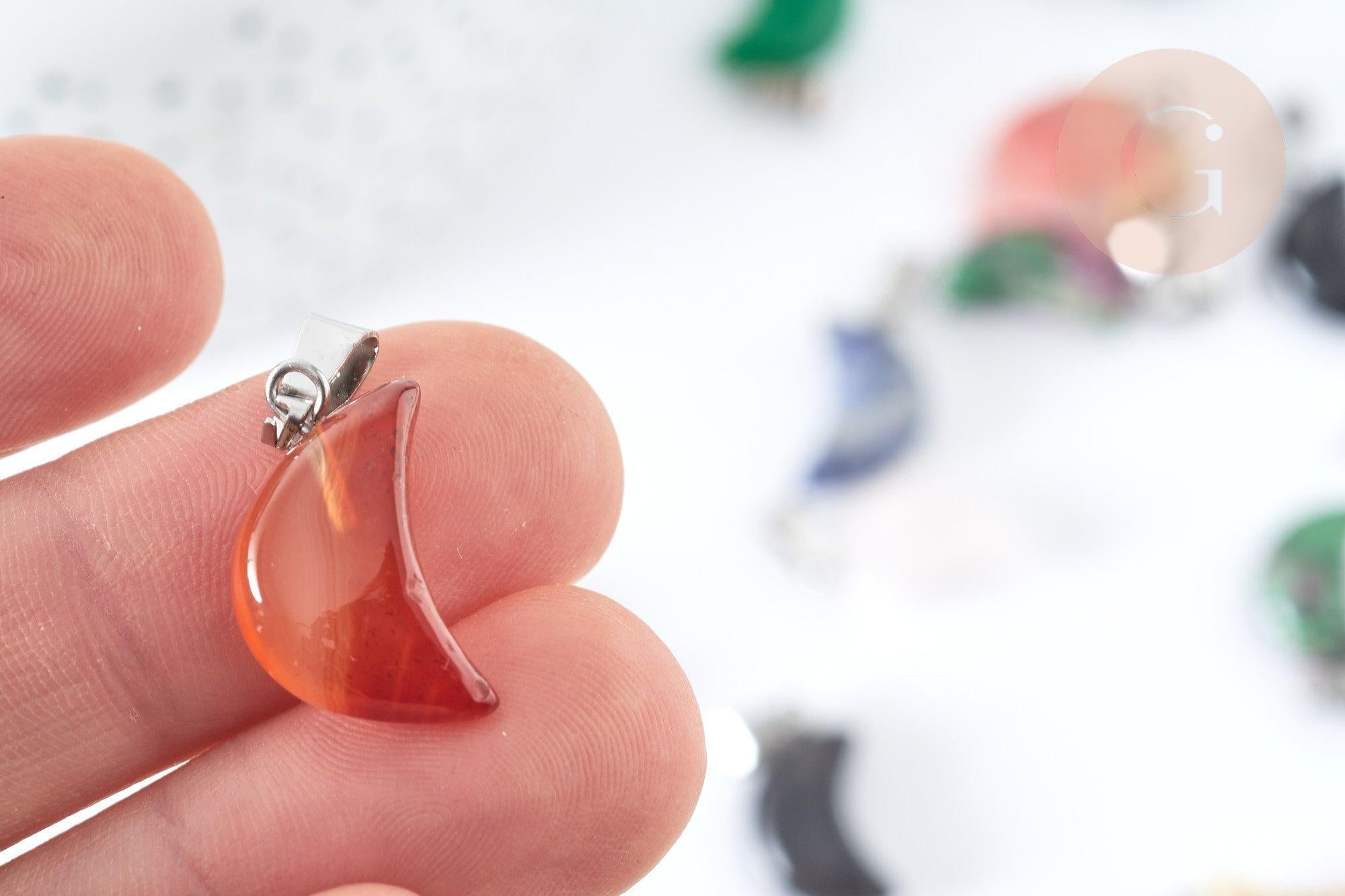 ¡Déjate encantar por el encanto de este colgante en forma de media luna de piedra natural! Su elegante diseño te inspirará a crear tu bisutería DIY .