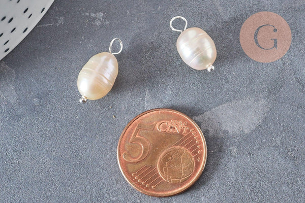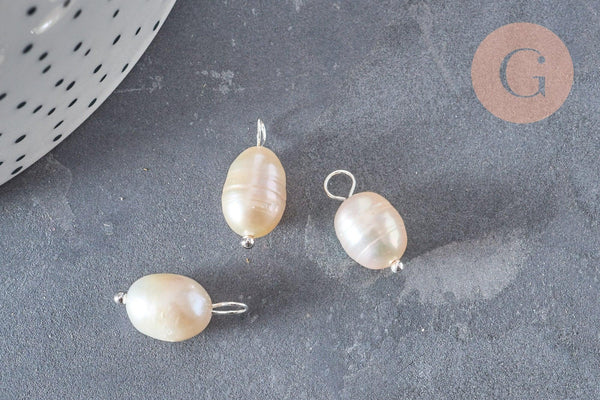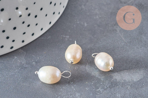 Un hermoso colgante de perla de agua dulce irregular, montado sobre una base de latón bañado en plata. Su forma orgánica y su tono perlado aportan un toque elegante, poético y natural a todas tus creaciones.