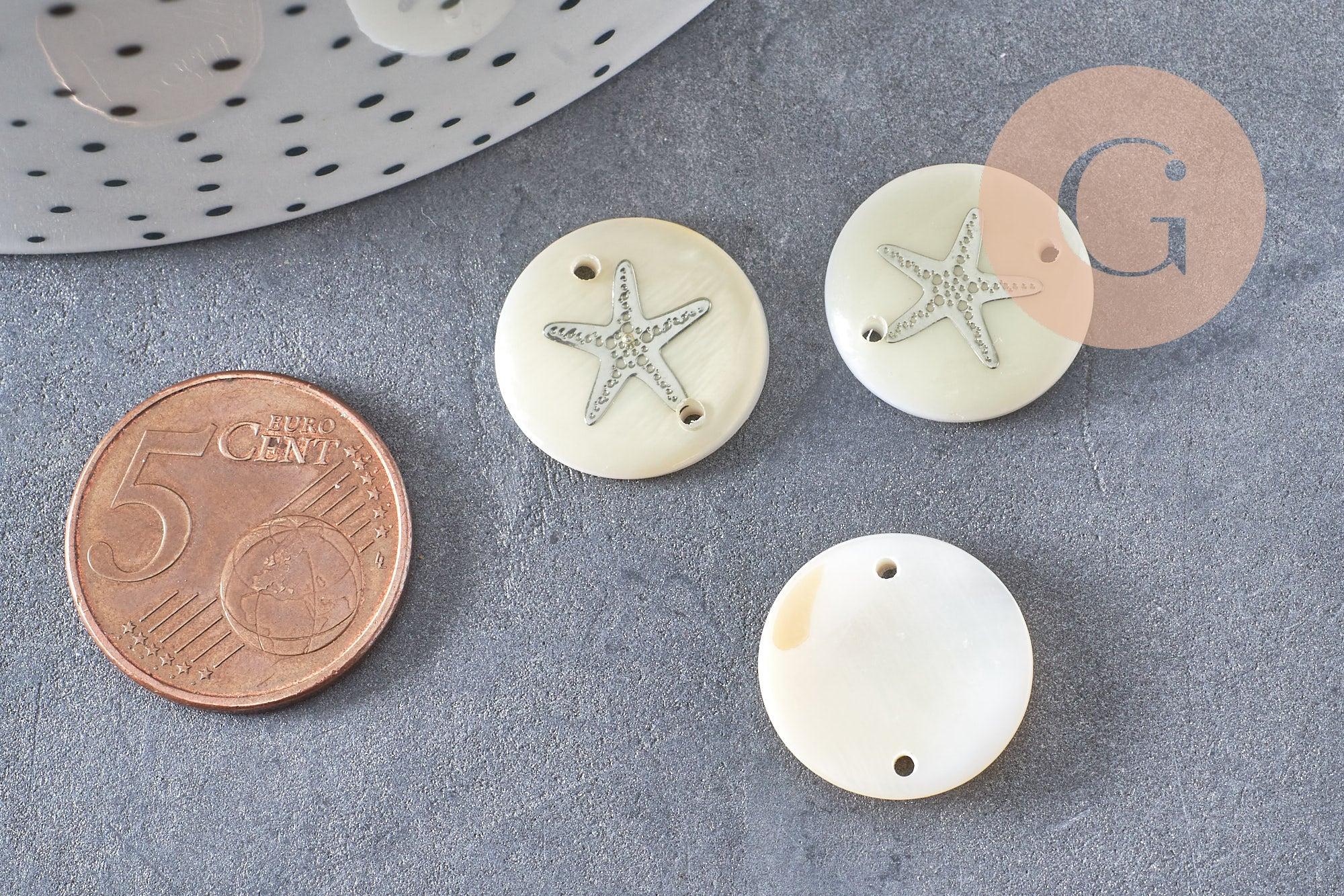Colgante de ancla redondo de nácar en plata, colgante de ancla, concha blanca, concha natural, creación de joyería, 16 mm, 2 agujeros x10 (G1070)
