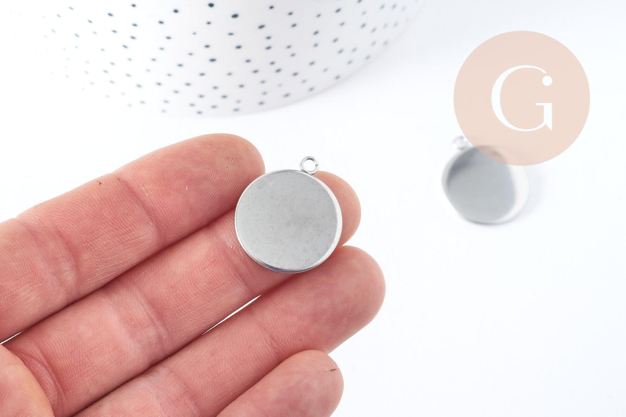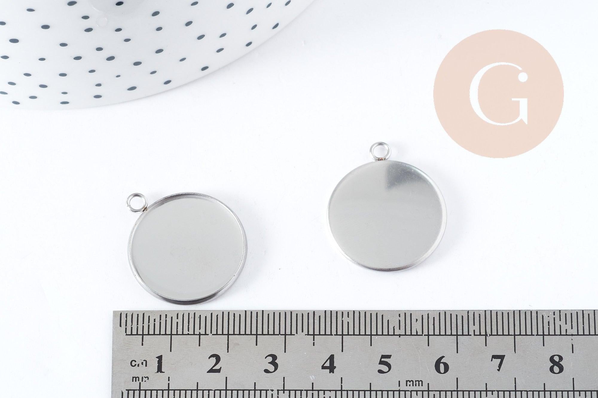 Colgantes, engaste de cabujón redondo, acero inoxidable 304, chapado en platino, 25 mm, 1 unidad (G8939)