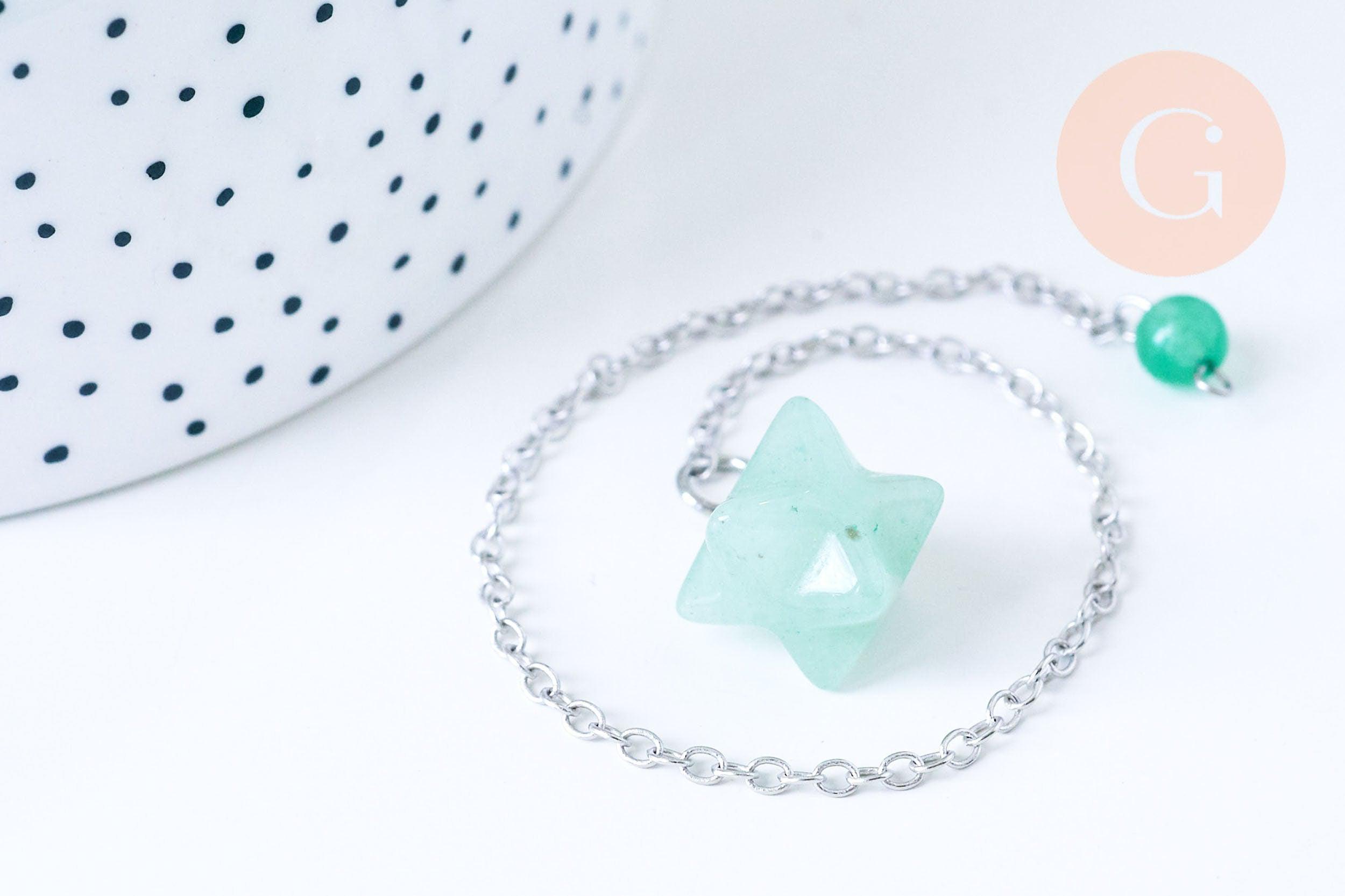 Péndulo radiestesia estrella Merkaba aventurina cadena de plata, péndulo magnetismo, litoterapia, creación de joyas, 23cm, x1 G5536