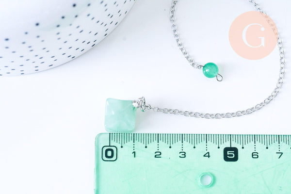 La cadena de plata está rematada con una cuenta de aventurina natural.