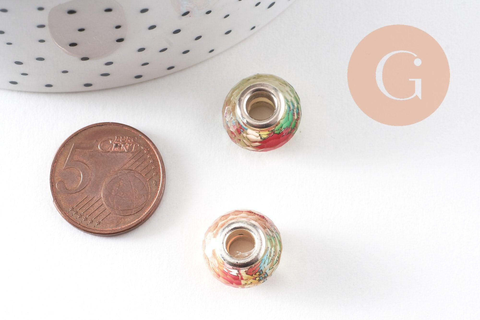 Perla de resina facetada multicolor, rondelle, color plata, perlas originales y transparentes para creación de joyas, 14 mm, x1 (G4385)