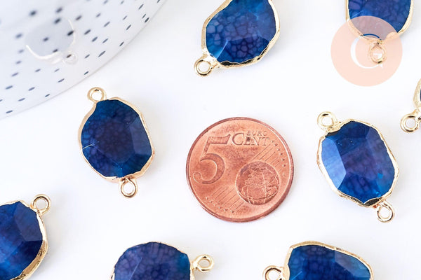 Pendentif connecteur agate naturelle bleu à facettes fer doré 25mm,x1 G5708