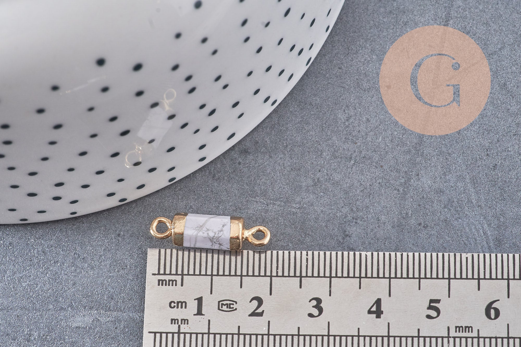 Colgante con conector de tubo de howlita dorada, suministros para manualidades, colgante de joyería, tubo de howlita, colgante de piedra, howlita natural, 20 mm